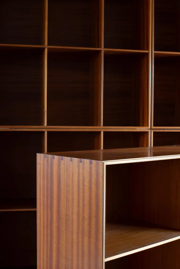 Mogens Koch set of six bookcases in mahogany. Executed by Rud. Rasmussen.Reverse with paper labels ‘RUD. RASMUSSENS/SNEDKERIER/KØBENHAVN/DANMARK.