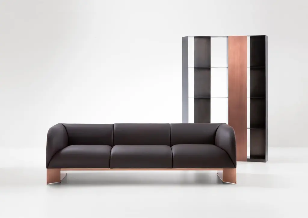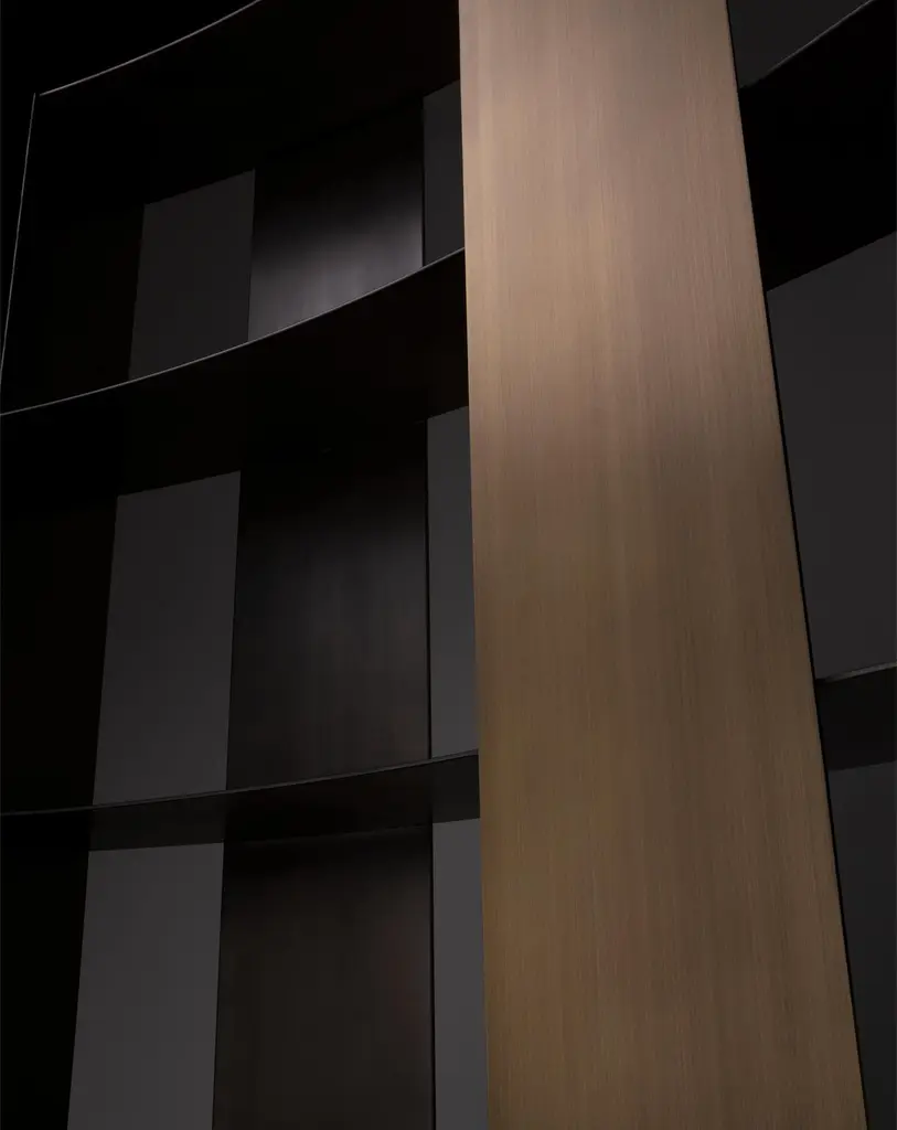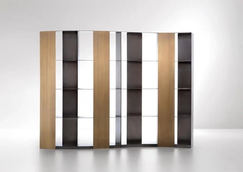 Nami Bookcase by De CastelliDimensions: W 140 x D 37 x H 200 cmMaterials: Striped DeLabré BrassOther versions are available. Please contact us for any request.Modular bookcase characterized by a sinuous course that also makes it a separate self-standing, if positioned in the center of the room to configure the space. In the "C" composition, Nami embraces like a hug, while in the "S" composition it draws a rhytmic and balanced profile of solids and voids. Striped DeLabré stainless steel structure is enriched by the decorative band, available in precious De Castelli finishes on steel, brass and copper, to furnidh the room with personalityDE CASTELLI“HARD COUTURE”Faithful to its decision to reinstate the special role of metal in design and experimentation, De Castelli infuses artisan ideas and workmanship into industrial processes, leading to entirely original results. The encounter with design inspires an approach to materials founded upon respect for their potential, be it hidden or obvious, which emerges slowly in a collection of pieces that, despite being part of a series, remain unique.Unique not only for the hand that has created them, but also for the singular cultural path that focuses on the aesthetic (and not just practical) value of the primordial material with which De Castelli shapes living spaces.A BESPOKE APPROACHEach object, even in the repetition of form, is a creative act in and of itself, one that incorporates a heritage of constantly-evolving expertise and research. The equation that relegates ‘cold’ metals to the margins of furnishing projects is thus overturned, bringing iron, brass and copper, in their infinite variations and finishes, to the centre of an entirely renewed stage, allowing them to finally shine with their own light.SUSTAINABILITYDe Castelli has always been committed to making the entire production cycle increasingly sustainable, aware that metal, the material with which its business identifies itself, is precious and must be treated with care, without waste.PEOPLE FIRSTThe wide spaces of the De Castelli headquarters in Crocetta del Montello (TV) allow those who work to enjoy environments where order, cleanliness and safety are always maintained and guaranteed. An attitude of attention and respect for people that has led to the shared ethical code.