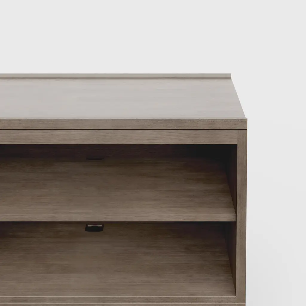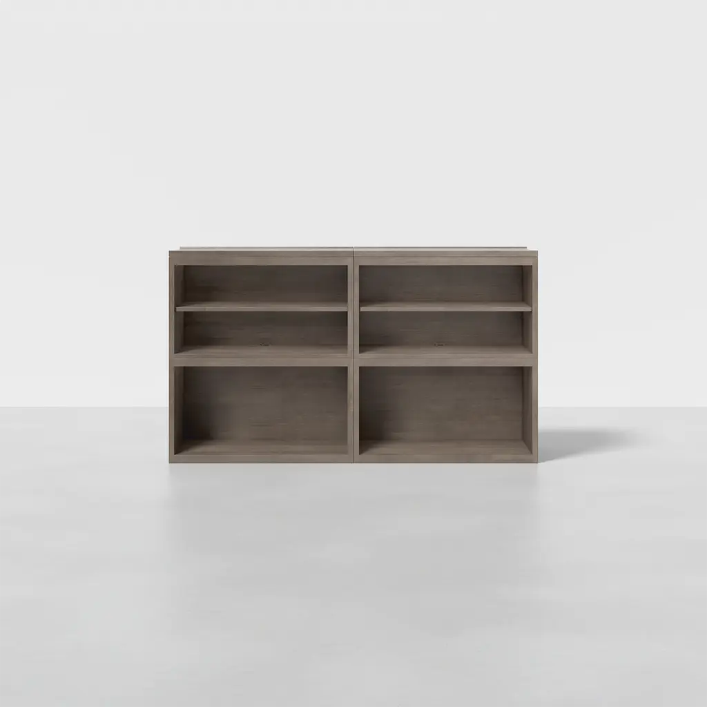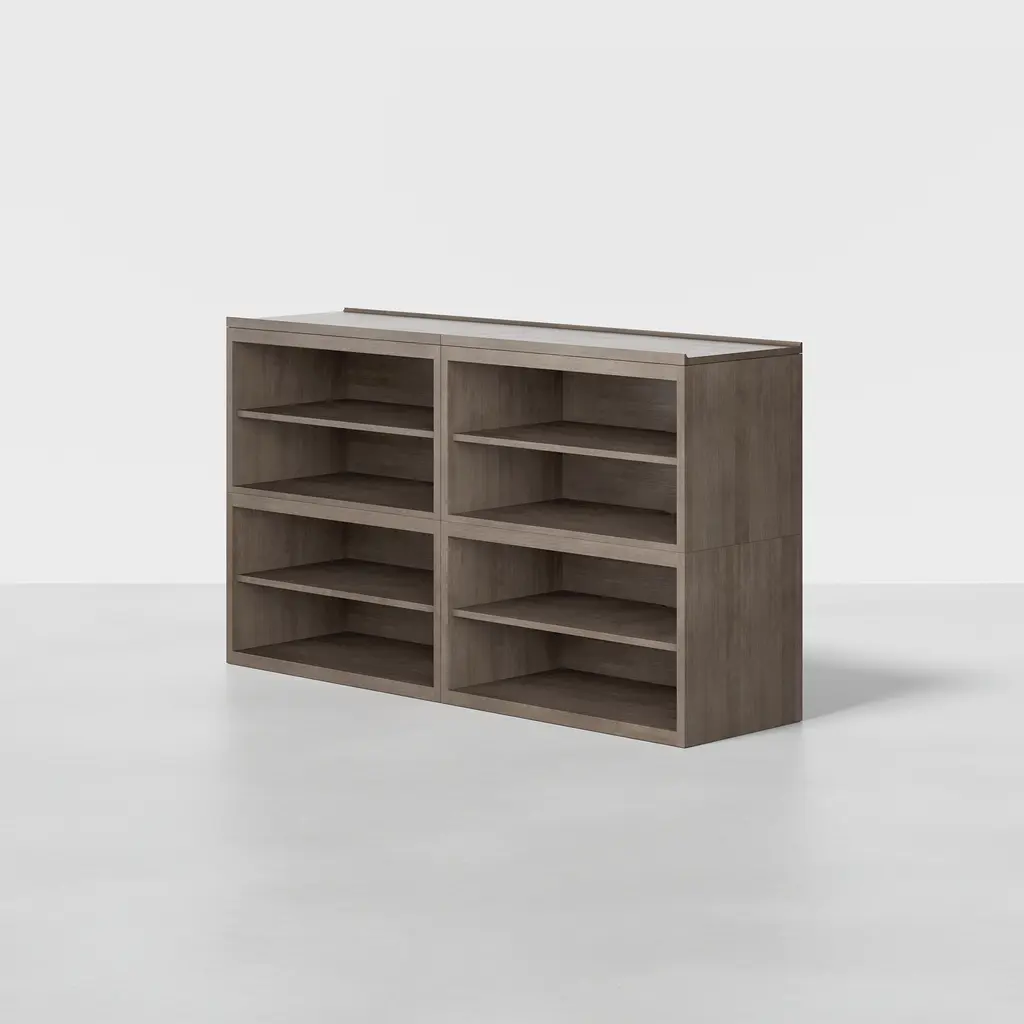 A highly versatile piece that emphasizes visibility and flexibility. Combines the luxury of built-in shelving with the flexibility of a modular design. Do not stack more than 2 shelves or 47" vertically.