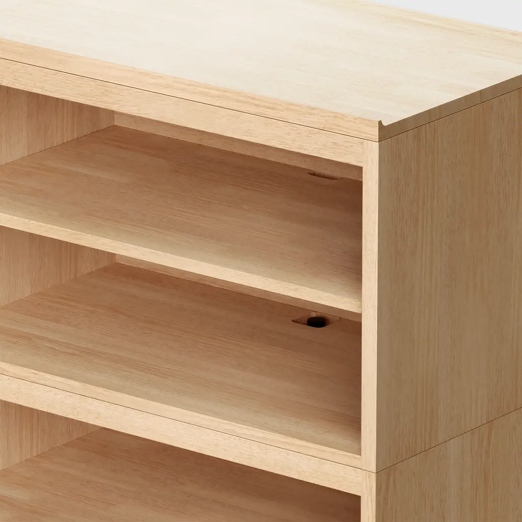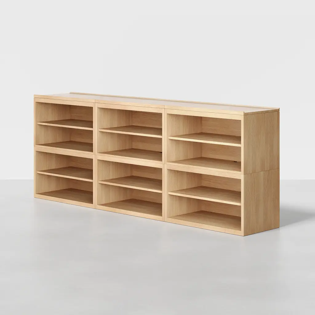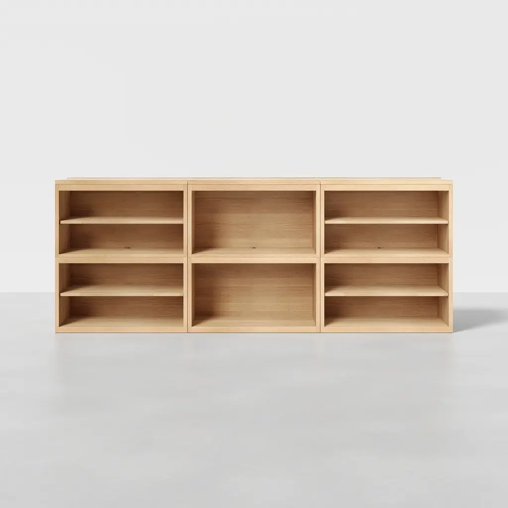 A highly versatile piece that emphasizes visibility and flexibility. Combines the luxury of built-in shelving with the flexibility of a modular design. Do not stack more than 2 shelves or 47" vertically.