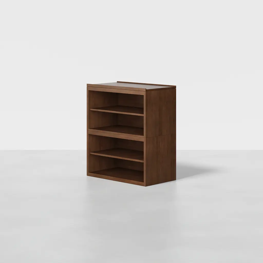 A highly versatile piece that emphasizes visibility and flexibility. Combines the luxury of built-in shelving with the flexibility of a modular design. Do not stack more than 2 shelves or 47" vertically.