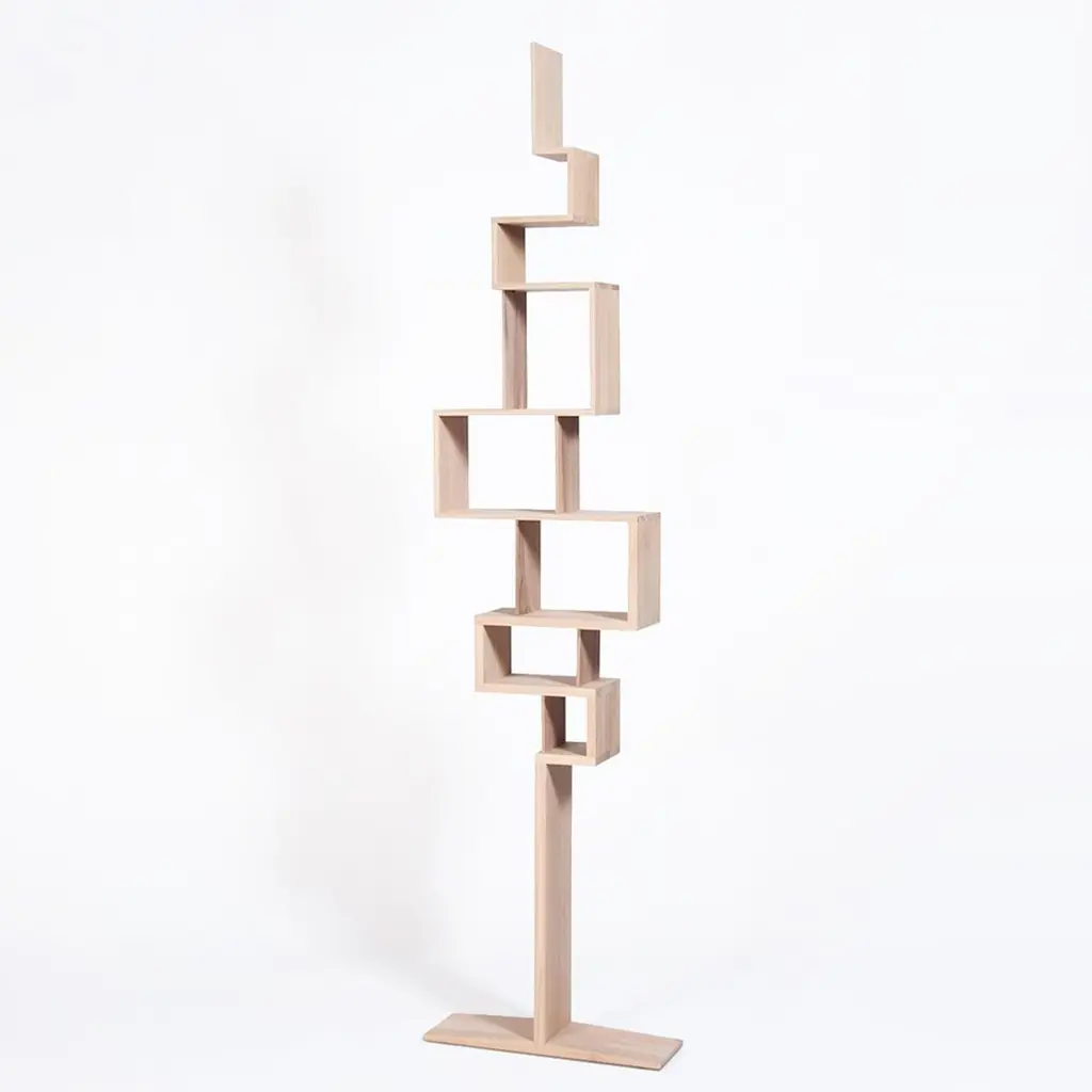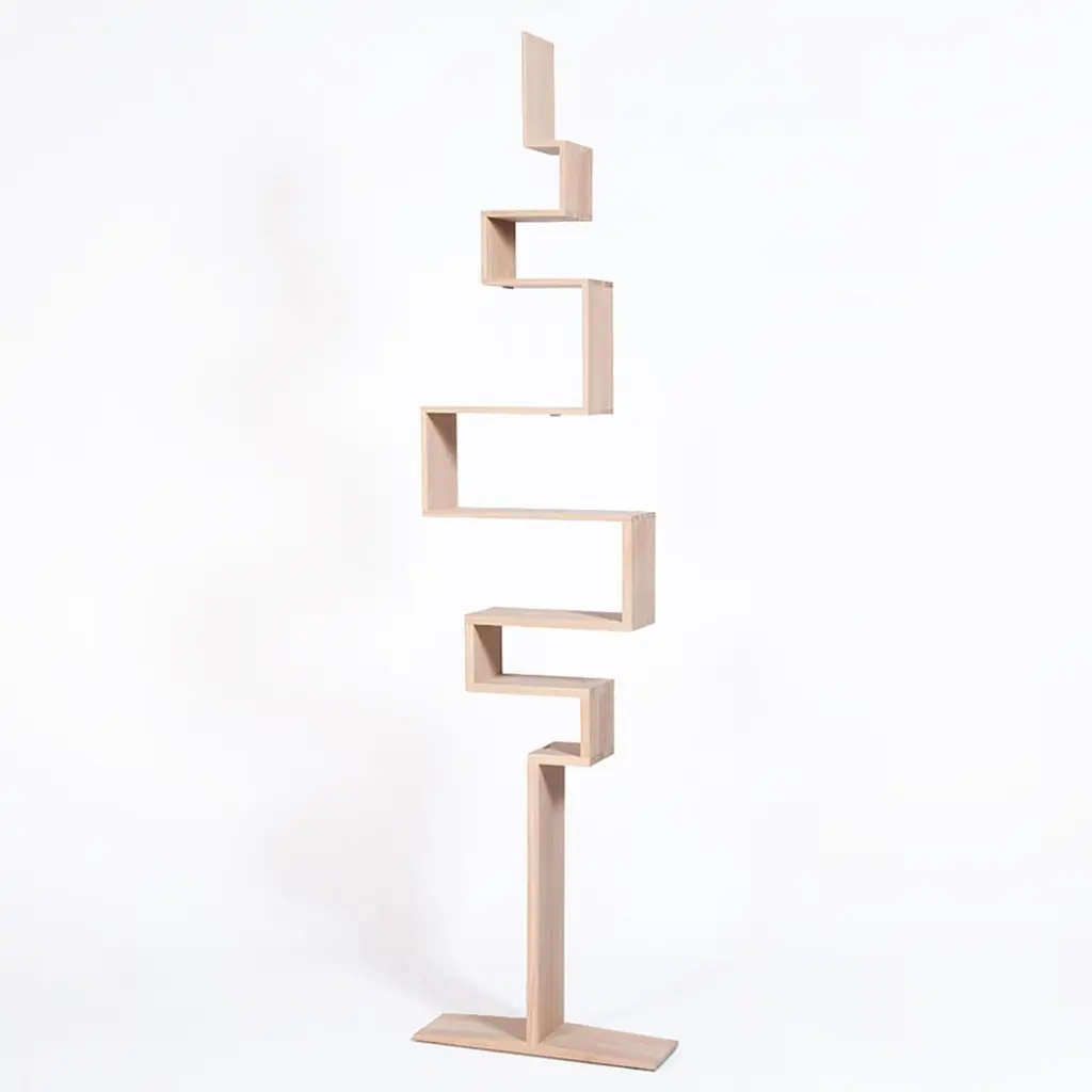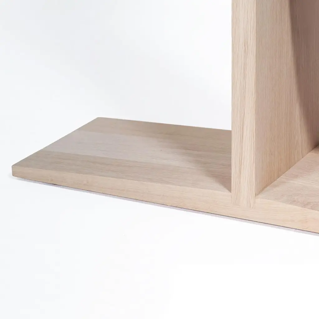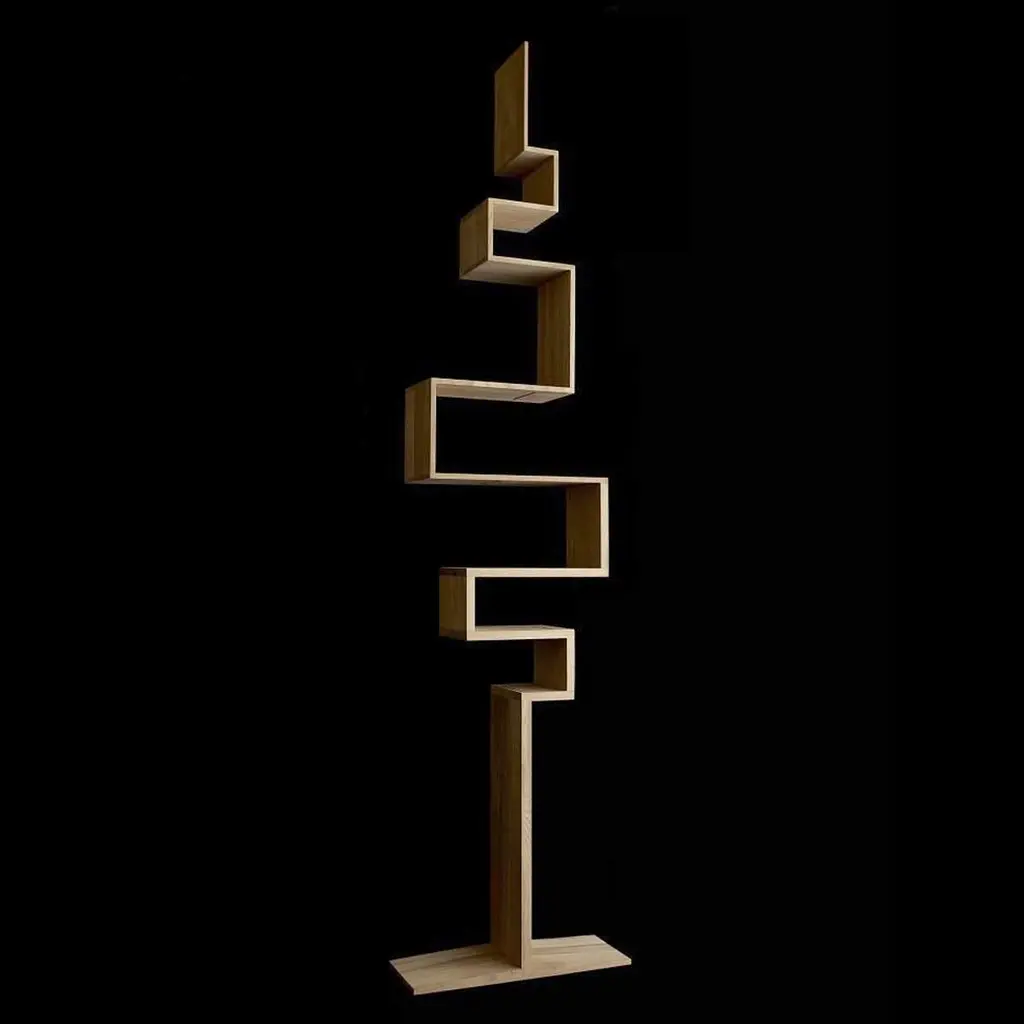 Bookcase oak stairs with structure in 100% solid oakfrom French sustainable forest. With 5 removableparts in walnut tinted like the oak structure.It has to be fixed in one point to the wall.