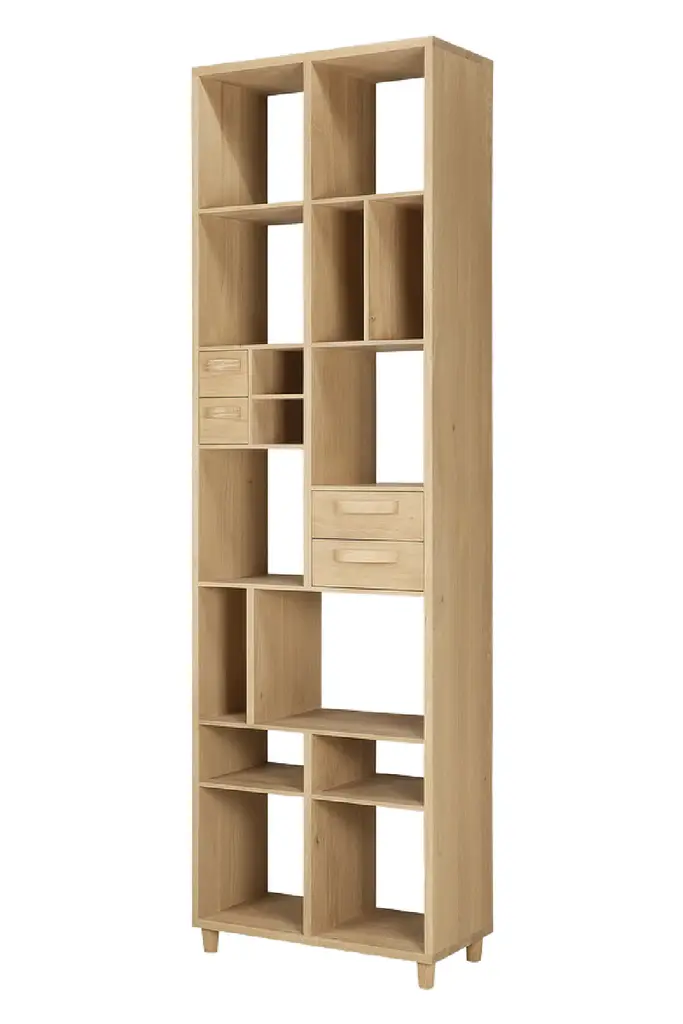 Oak Wood Bookcase With Drawers | Ethnicraft Pirouette