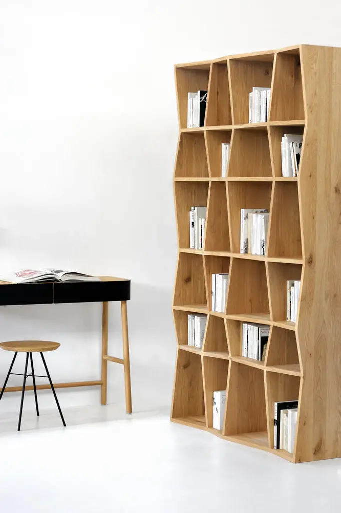 The Oiled Oak Book Rack boasts a distinctive appearance with its intriguing interplay of lines and shadows, accentuating the innate charm of the wood. Crafted from solid oak with a hardwax oil finish, this Ethnicraft Z rack exudes timeless elegance. Its numerous open shelves allow you to showcase your favorite books, decorative items, and collectibles, creating a personal touch and visual interest to your interior décor.