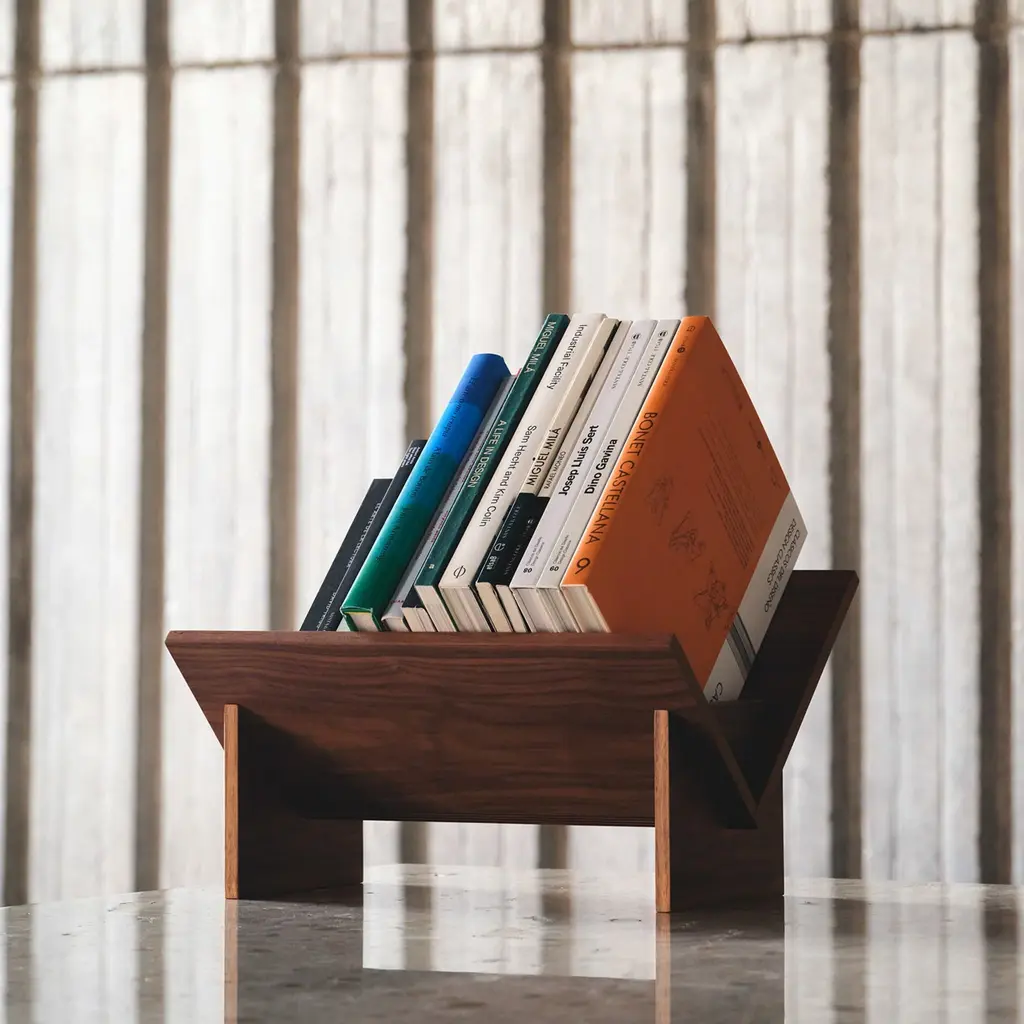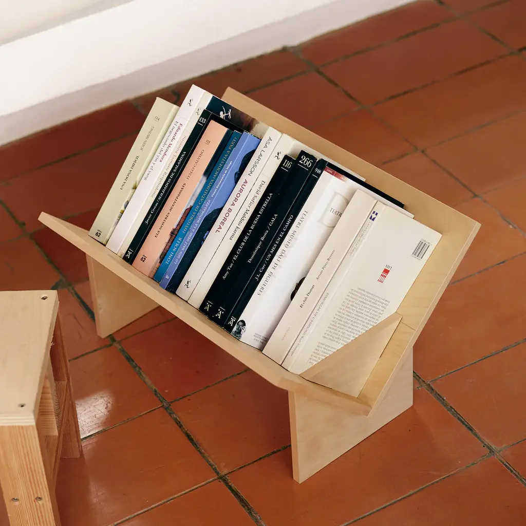 The Bookcase is a compact piece crafted from natural birch or walnut wood. Its minimalist structure features a simple rectangular frame that accommodates everything from small paperbacks to large art books. It can be placed on the floor or on a surface. The flat-pack design ensures easy assembly and transportation, while the wood's natural finish enhances its beauty over time.