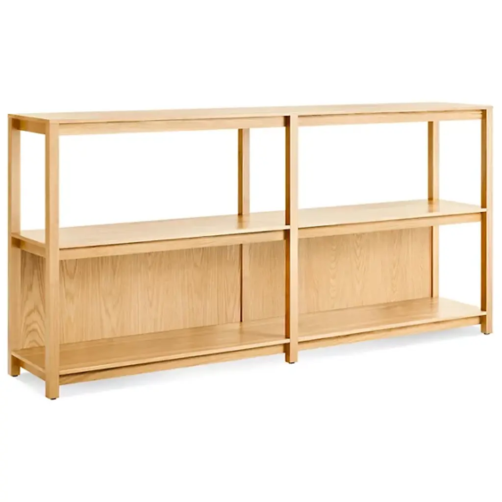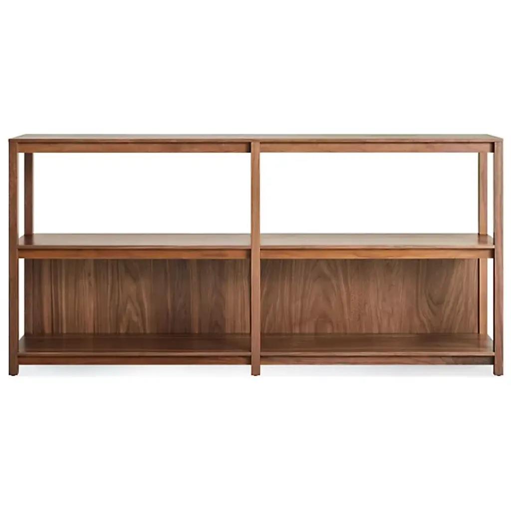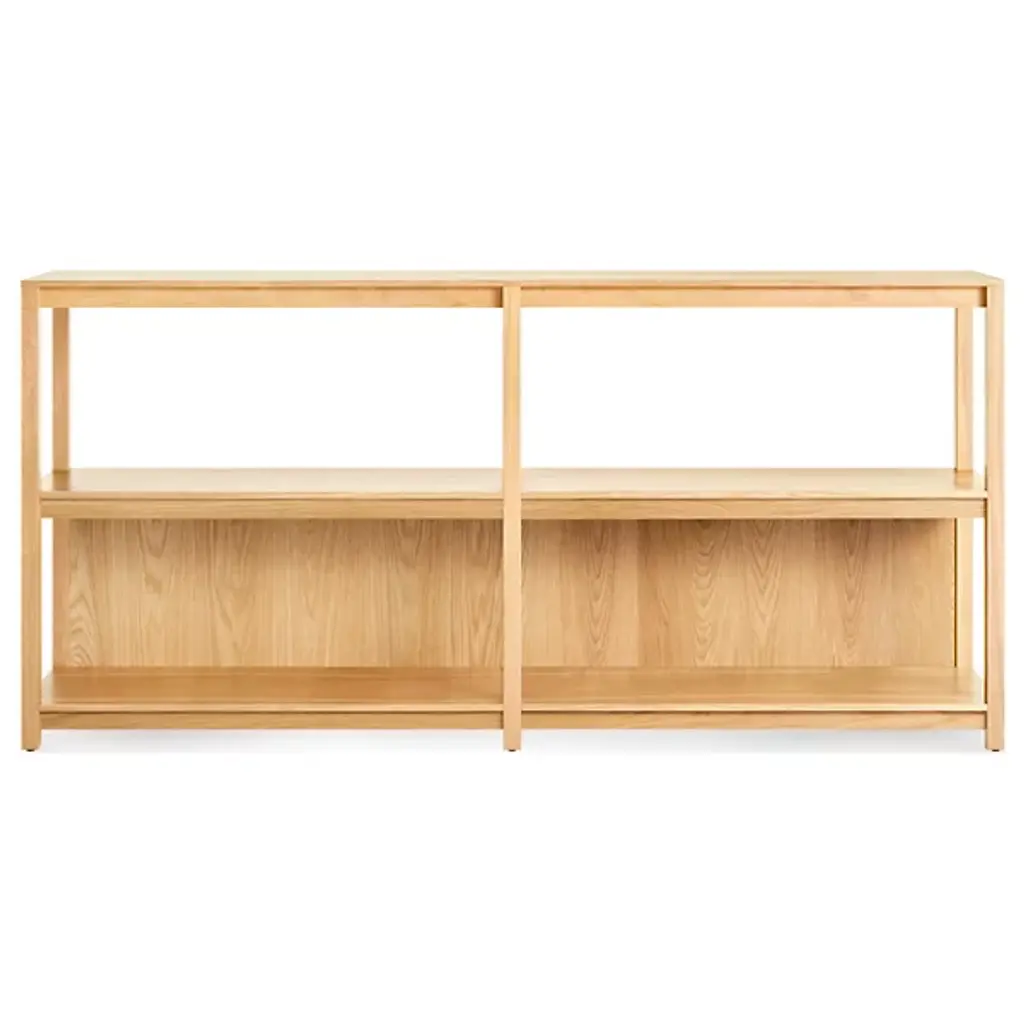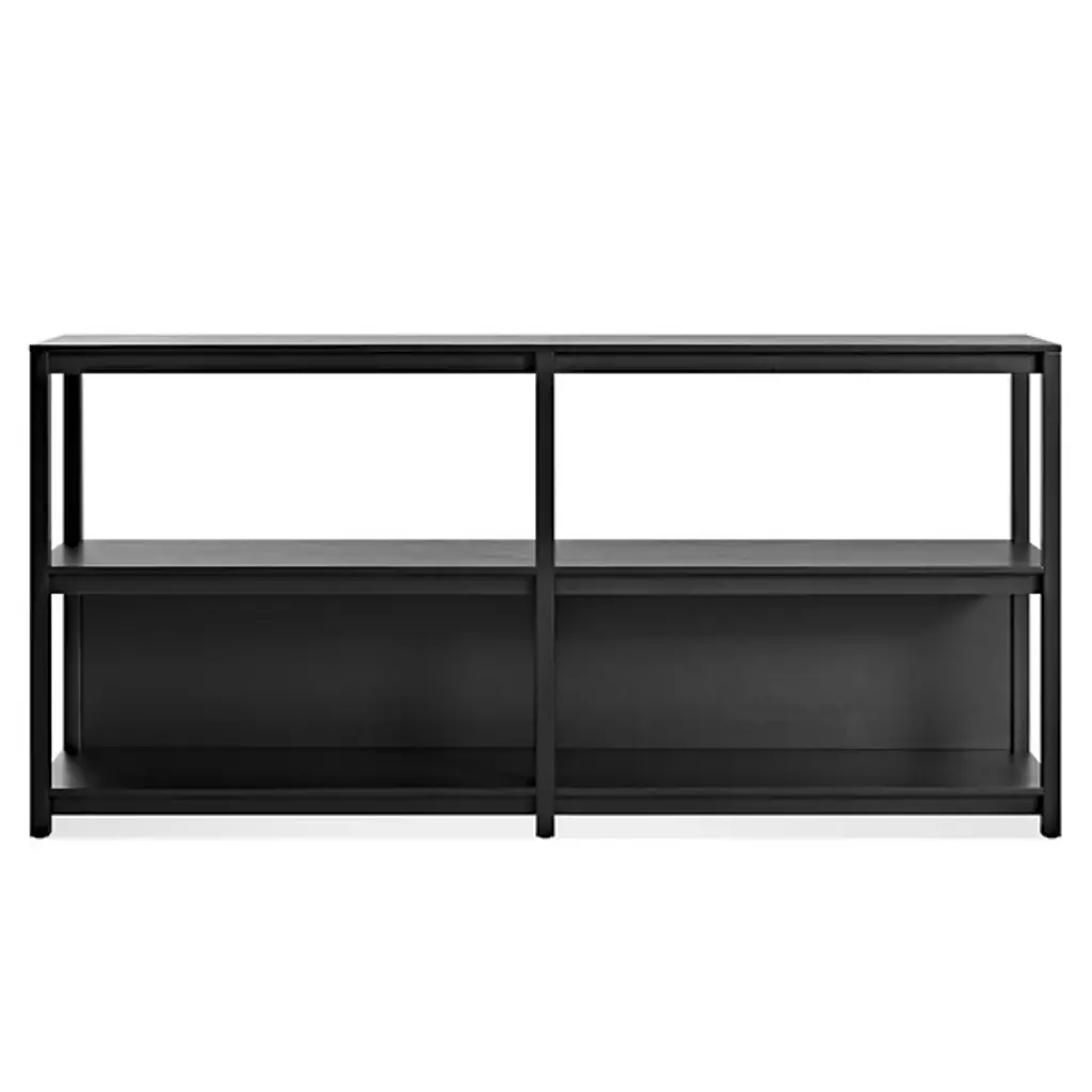 Create a space that will maximize storage while still creating an open environment with the Open Plan Large Low Bookcase. Constructed of wood veneer shelves that have fixed positions, the shelf height works well with vinyl records and comes with an anti-tip hardware kit. The Open Plan Large Low Bookcase is finished on its backside and pairs nicely up against a sofa, wall, or even floated. Minimal assembly is required and has adjustable feet glides to help from scoffing and for leveling.