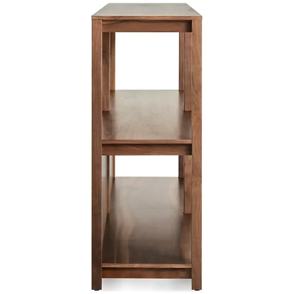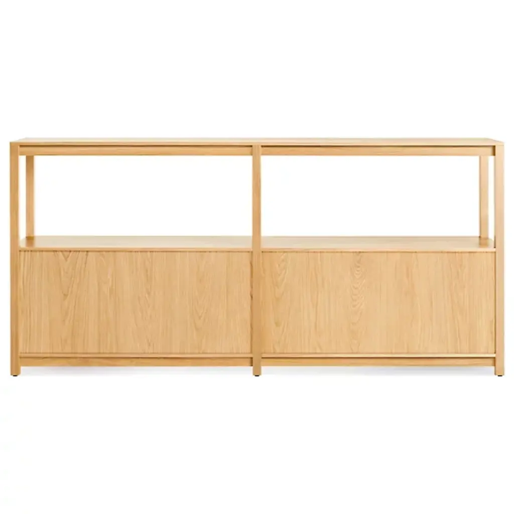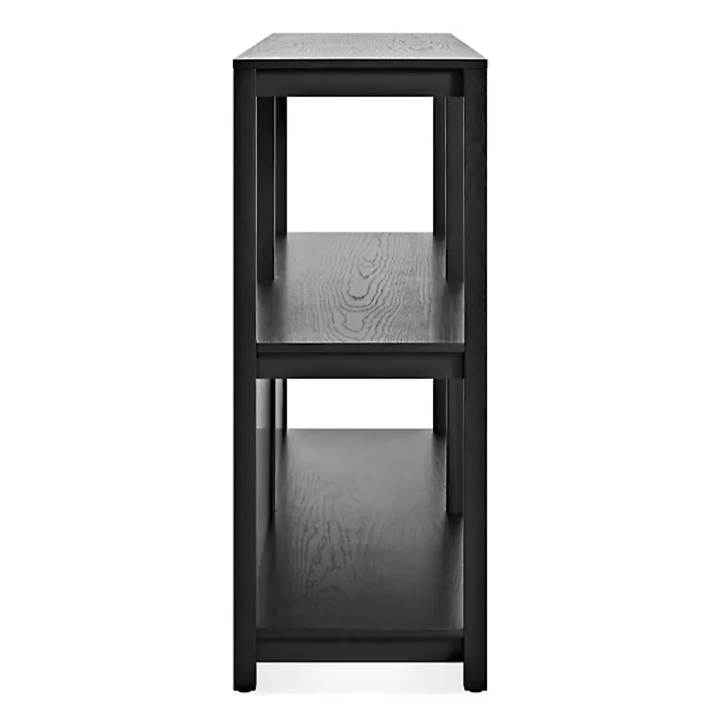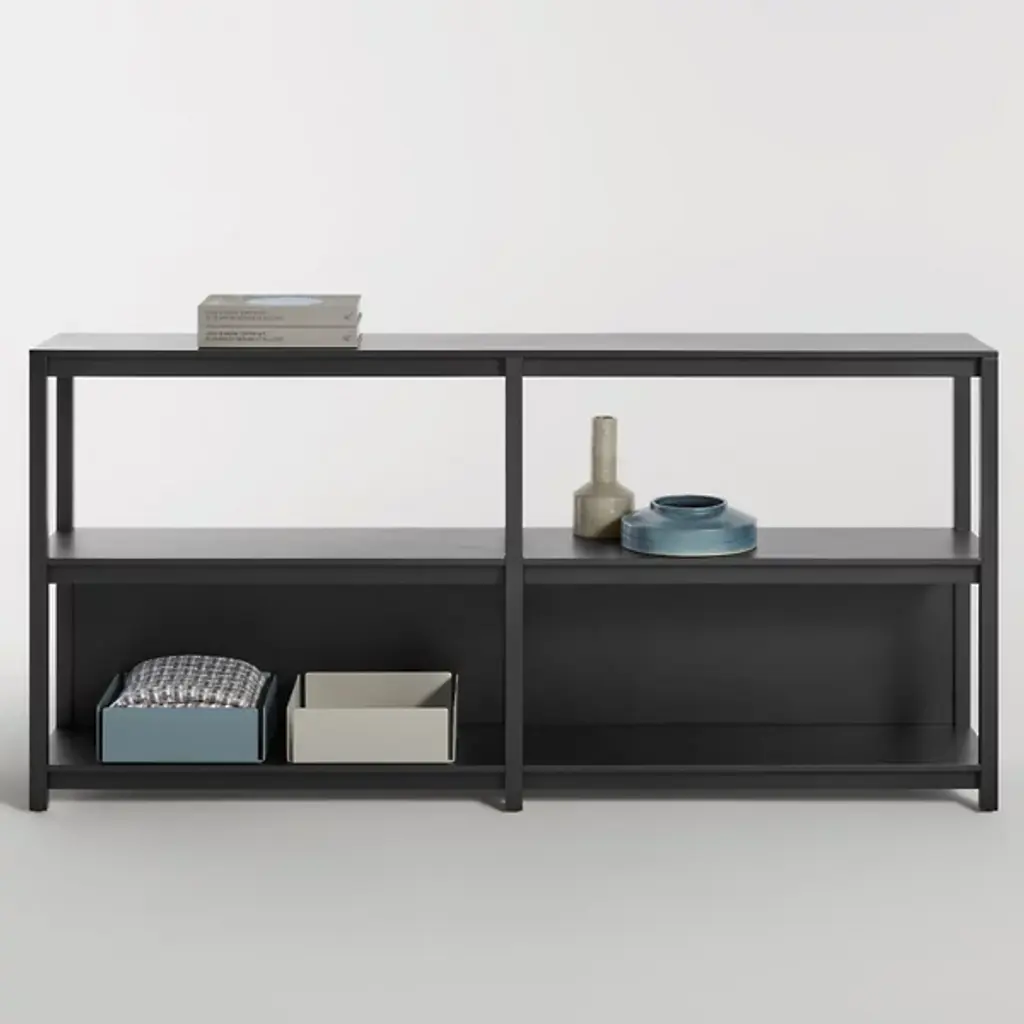 Create a space that will maximize storage while still creating an open environment with the Open Plan Large Low Bookcase. Constructed of wood veneer shelves that have fixed positions, the shelf height works well with vinyl records and comes with an anti-tip hardware kit. The Open Plan Large Low Bookcase is finished on its backside and pairs nicely up against a sofa, wall, or even floated. Minimal assembly is required and has adjustable feet glides to help from scoffing and for leveling.