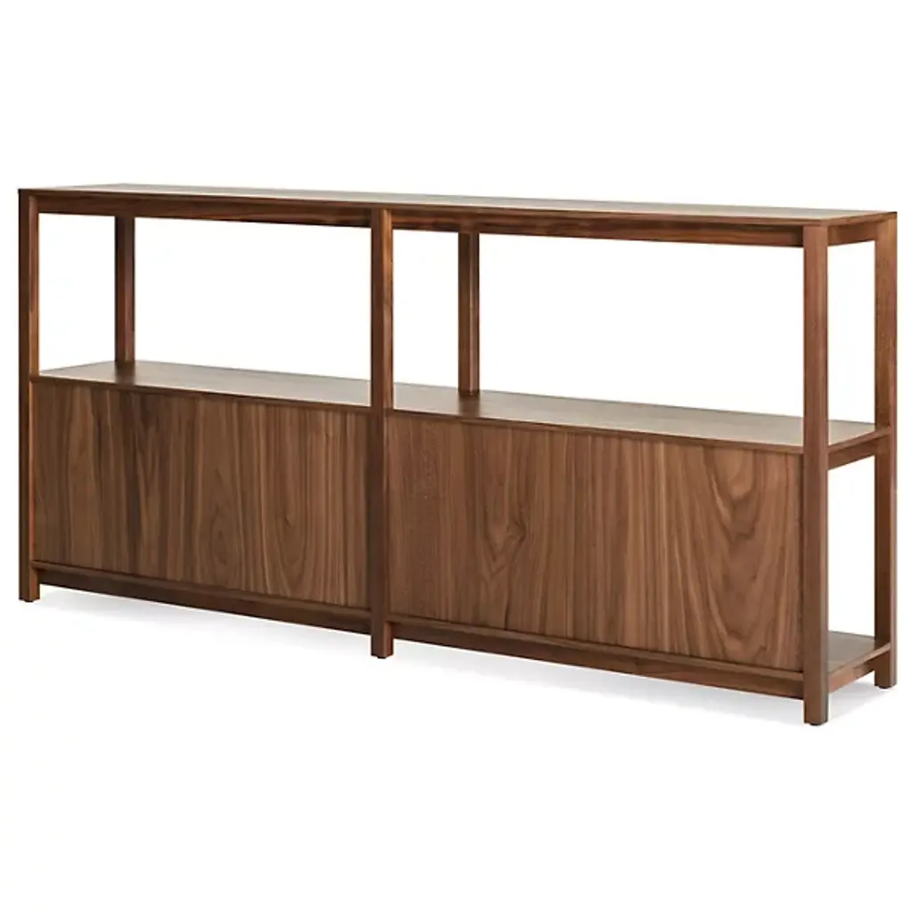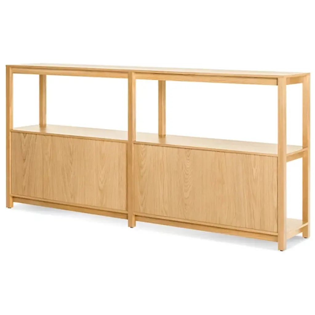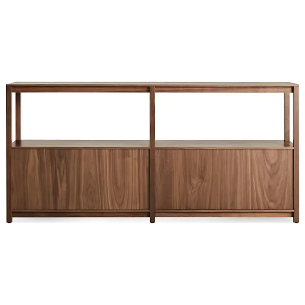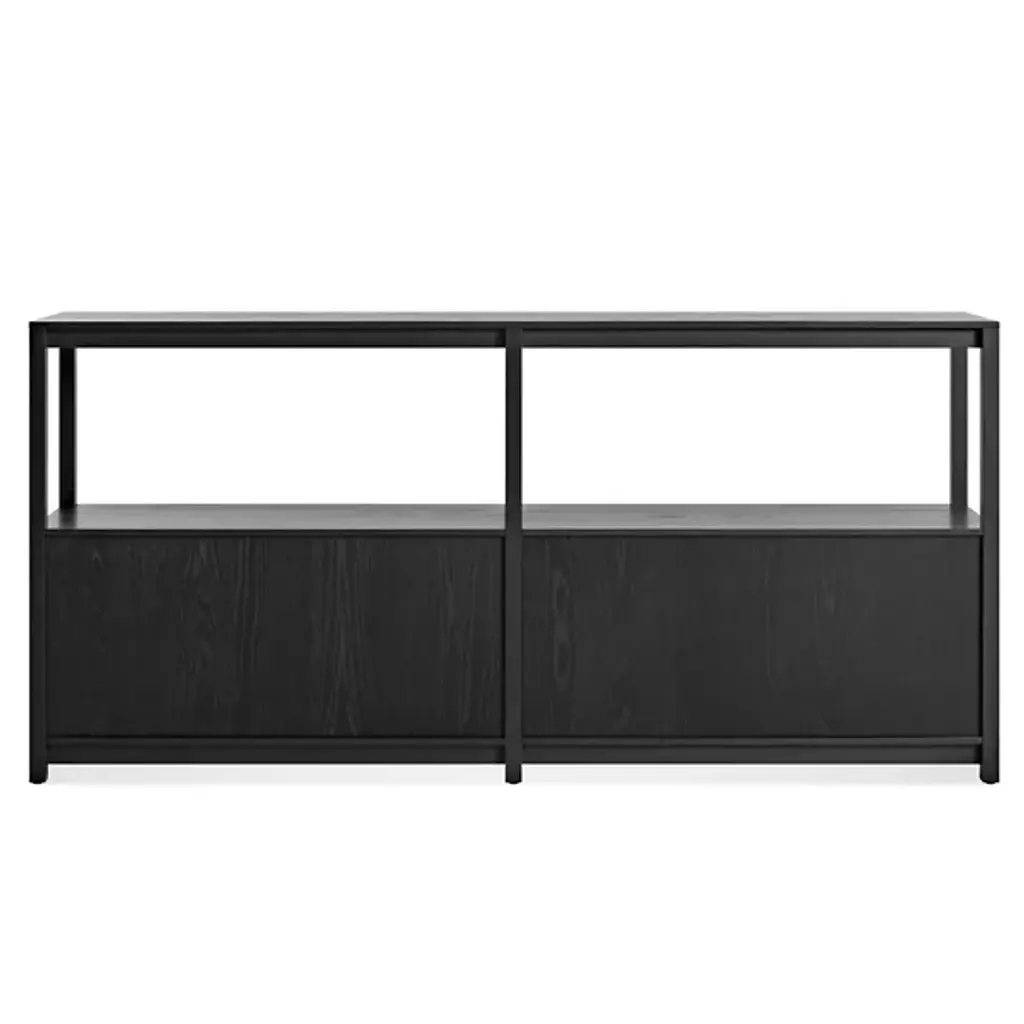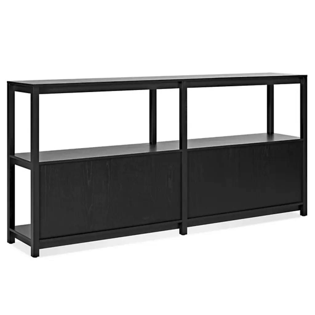 Create a space that will maximize storage while still creating an open environment with the Open Plan Large Low Bookcase. Constructed of wood veneer shelves that have fixed positions, the shelf height works well with vinyl records and comes with an anti-tip hardware kit. The Open Plan Large Low Bookcase is finished on its backside and pairs nicely up against a sofa, wall, or even floated. Minimal assembly is required and has adjustable feet glides to help from scoffing and for leveling.