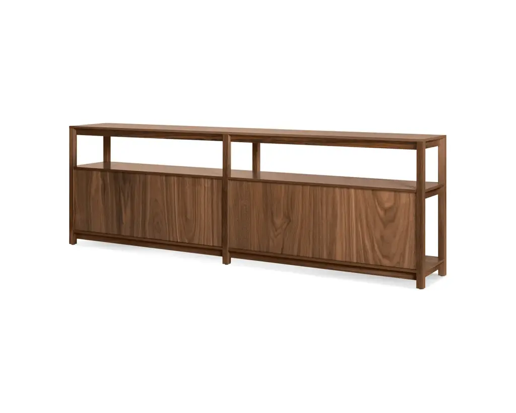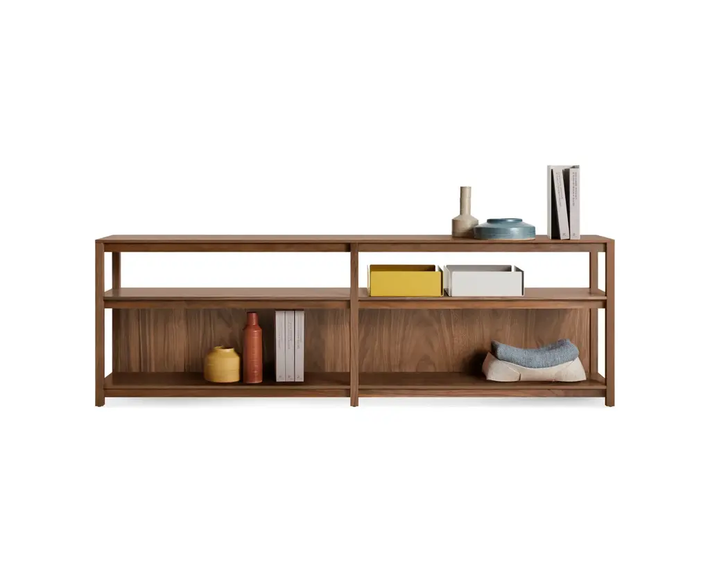 The trick is there is no trick. What you see is all you need. Open Plan is about functional space that celebrates a single material and elevates your materials – reading and otherwise. Back it up against a sofa, use along a wall or float it.