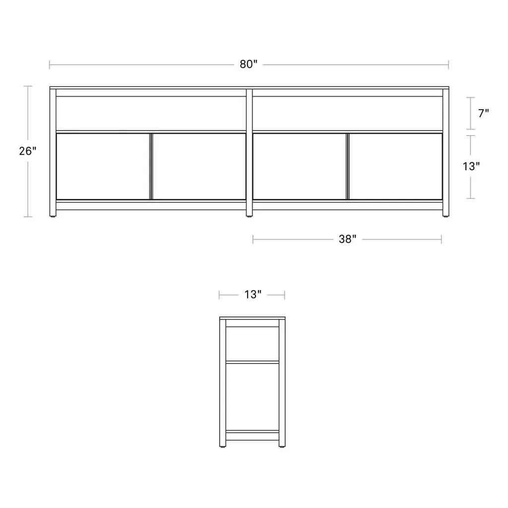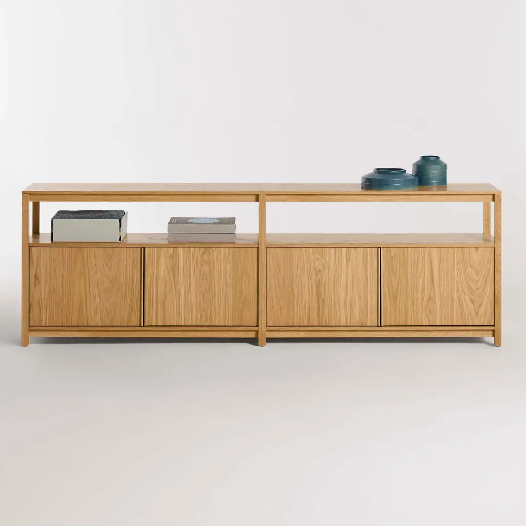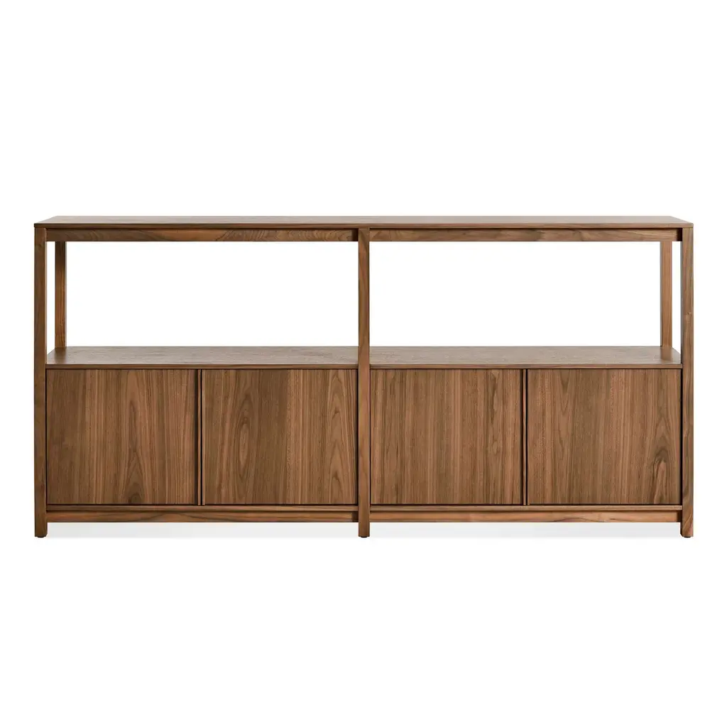 The Open Plan Long and Low Bookcase with Storage from Blu Dot is designed for the stylish organization of your space. Boasting clean lines and an understated look, this piece offers ample room to display your treasured keepsakes and books while providing discreet storage to keep your other belongings tucked away. Expertly crafted for a modern and minimalistic aesthetic, this bookcase is the perfect choice for the luxury home. Highlights