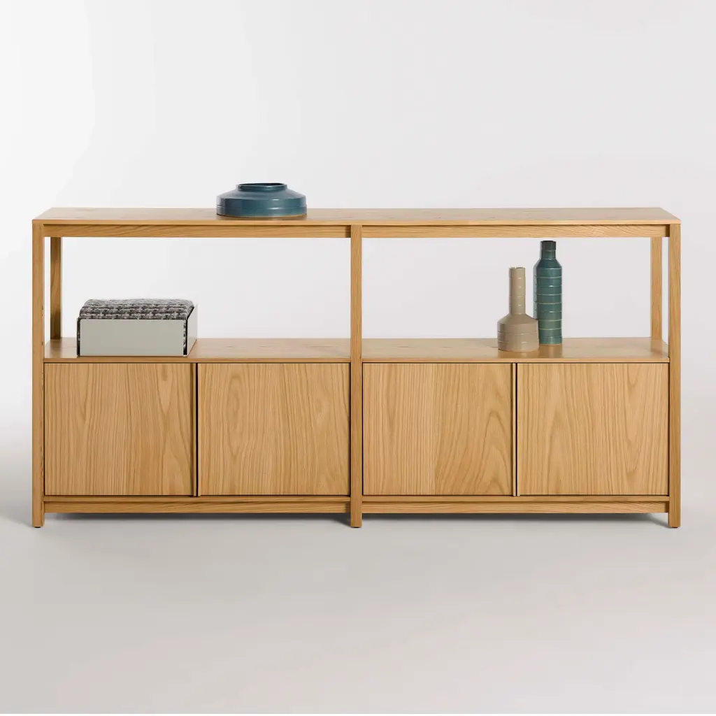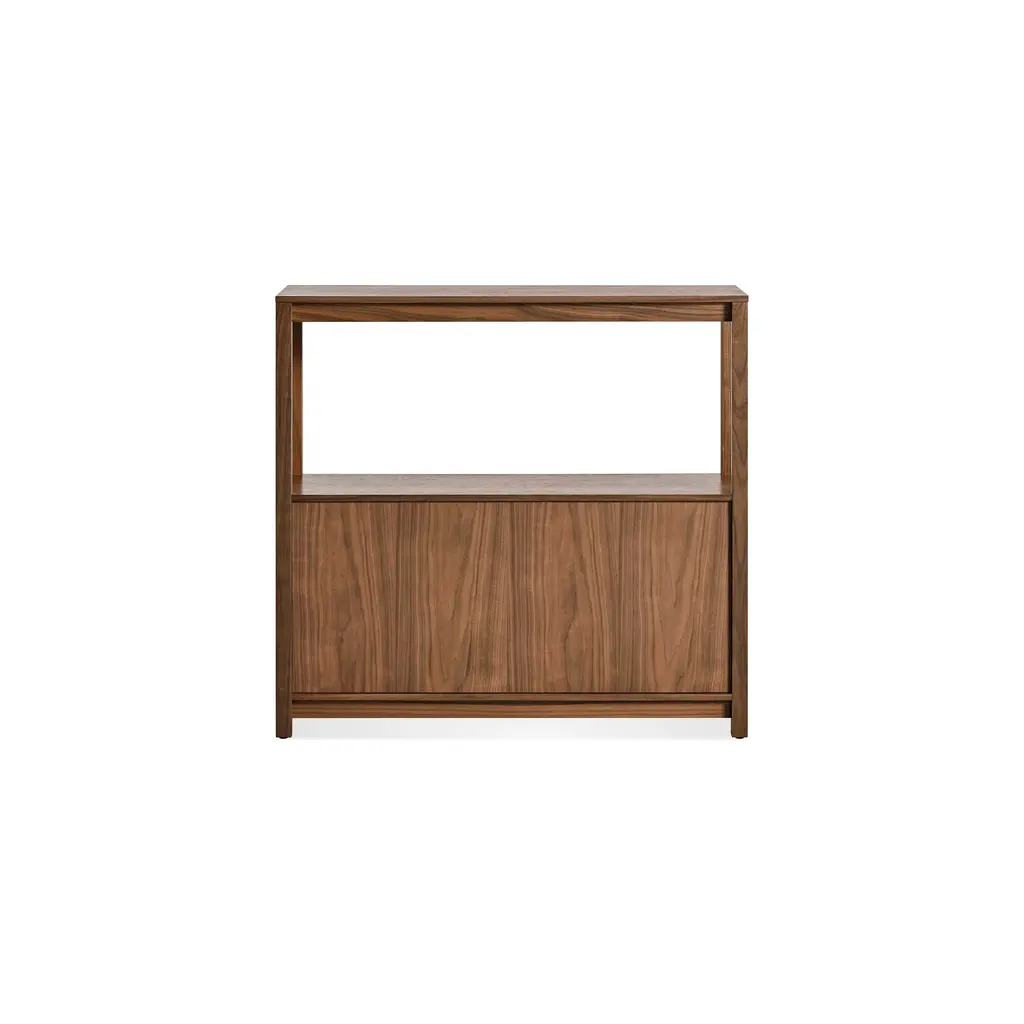 The Open Plan Low Bookcase with Storage from Blu Dot presents a tasteful display of stylish minimalism. Crisp lines, an understated look, and smart storage solutions combine to ensure your home remains organized and clutter-free without sacrificing sophistication. Refined storage options allow you to showcase treasured items while keeping the rest of your belongings tastefully tucked away. Highlights