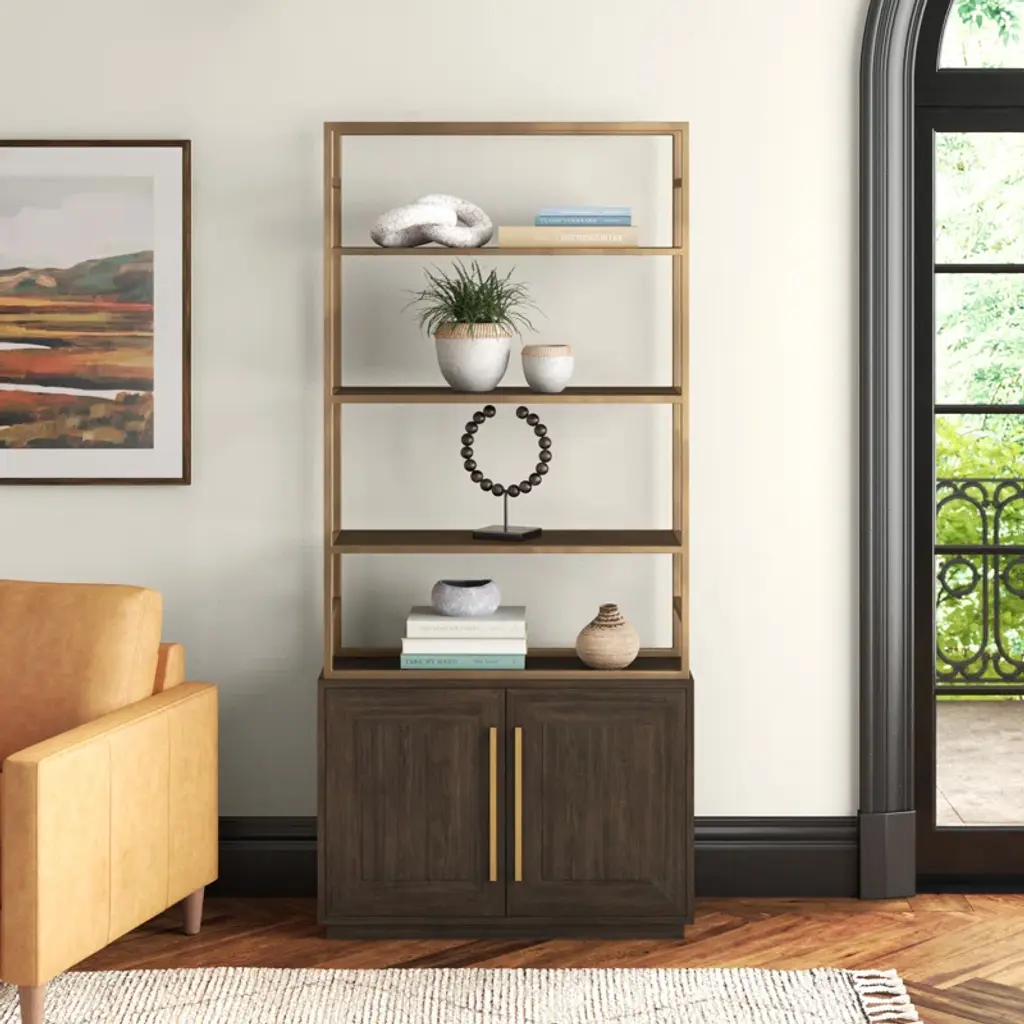 The Orlo will be a classically good-looking addition to your home. Made of solid oak and iron frame, it comes with four shelves for open display, plus a 2 door cupboard for a little hidden storage.