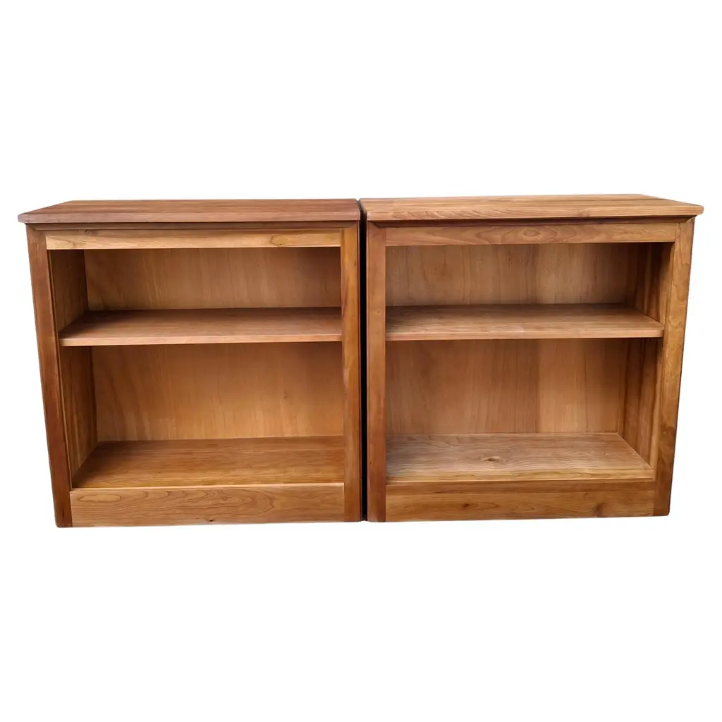 Pair Of Shaws Of London Flamed Hardwood Dwarf Open Library Bookcases Part Suite