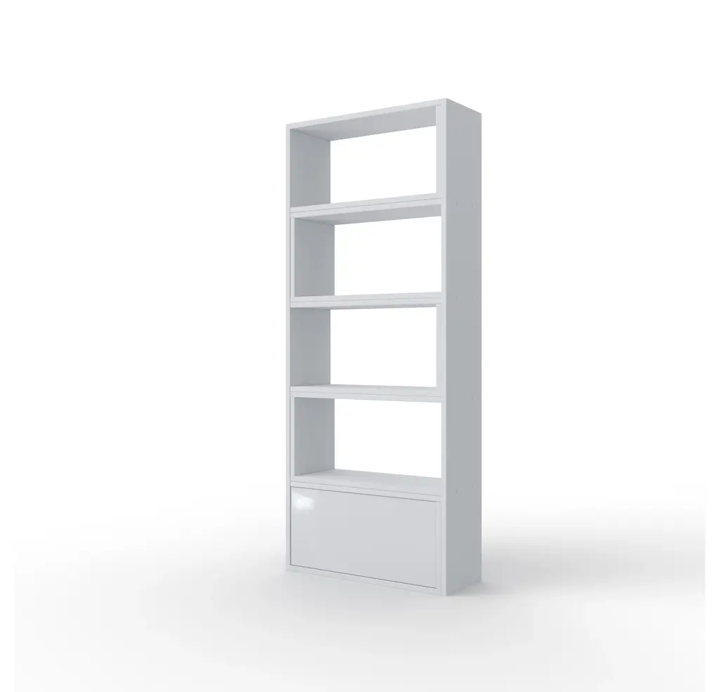 Deliver a modern and simple style to your space with PATO Modular bookcase that features clean, minimal design. This bookcase offers several assembly variations and features plenty of storage space for your books, accessories and is a perfect platform for framed photos or a pair of stylish lamps.Crafted from Laminated Chipboard.1 cabinet; High Gloss front.Modular system (width ranges from 29.1 to 51.2 inch).Made in Europe.