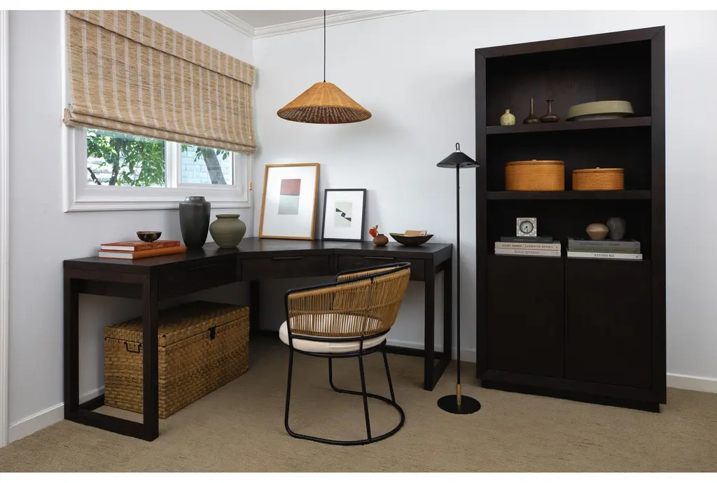 Bring bold minimalism and high function to your office with our Pierce bookcase. From clean, strong lines, to a rich, contemporary color, this design has it all. A combination of solid rubberwood and oak veneer ensures strength and sophistication that inspires a productive environment. With open shelving and closed cabinetry, you can enjoy the best of both worlds for keeping books and important knickknacks convenient.