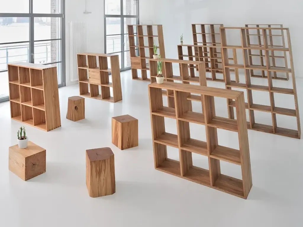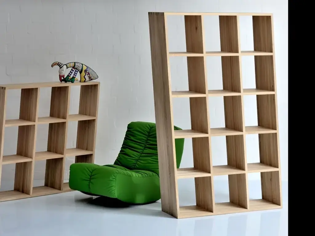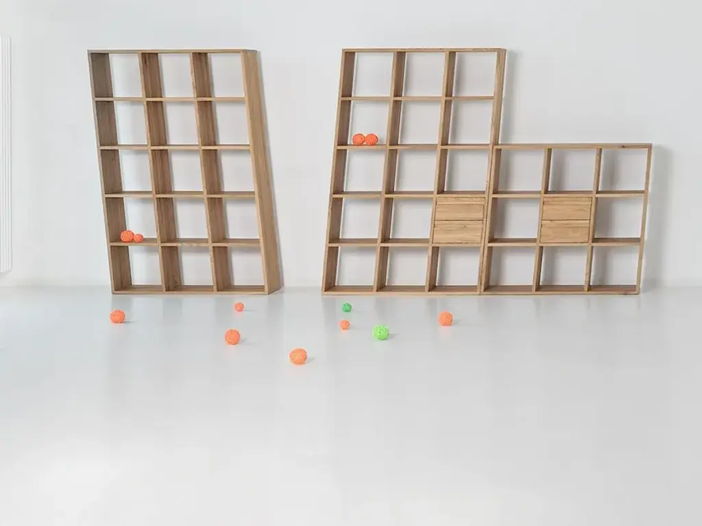 This is what the furniture world has not yet seen: The out of the ordinary solid wood shelf which does away with conventional furniture ideas is called PISA. The vertical side panels are slanted instead of being fitted in 90° angles, whereas the shelves are parallel to the floor. This results in a solid, very useful, out of the ordinary design object. The idea originates from VITAMIN DESIGN, Hamburg. This young brand is renowned for its ranges: PISA is made 100% from environmentally friendly materials, made from solid wood, environmentally approved glues, allergy tested surfaces. Such a design can only be realised from solid wood: Teeth and dowels ensure safe standing despite the tilt – regardless of its position. From fully solid wood, firmly fitted thanks to a tooth connection. Surface treatment with natural oils. PISA can be used as a shelf or room divider in the office or at home. PISA can be supplied in different wood types.PISA oblique:PISA 1 42 x 42 cm (16 1/2” x 16 1/2”)PISA 2 82 x 42 cm (32 1/4”x 16 1/2”)PISA 3 121 x 42 cm (47 5/8” x 16 1/2”)PISA 6 121 x 82 cm (47 5/8” x 32 1/4”)PISA 9 121 x 121 cm (47 5/8” x 47 5/8”) PISA 10 200 x 82 cm (78 3/4” x 32 1/4”)PISA 15 200 x 121 cm (78 3/4” x 47 5/8”)PISA straight:PISA G-1 42 x 42 cm (16 1/2” x 16 1/2”)PISA G-2 42 x 82 cm (16 1/2” x 32 1/4”)PISA G-3 42 x 121 cm (16 1/2” x 47 5/8”)PISA G-6 82 x 121 cm (32 1/4” x 47 5/8”)PISA G-9 121 x 121 cm (47 5/8” x 47 5/8”)PISA G-10 82 x 200 cm (32 1/4” x 78 3/4”)PISA G-15 121 x 200 cm