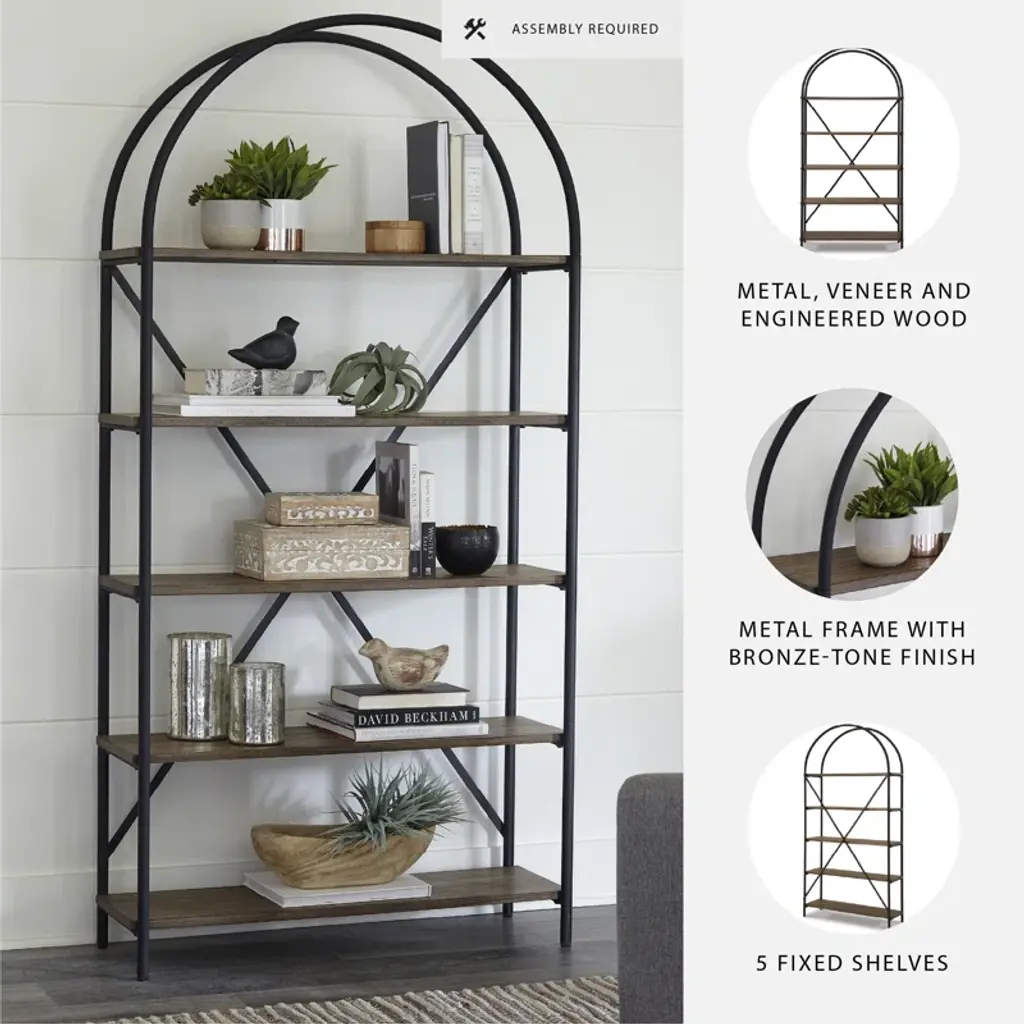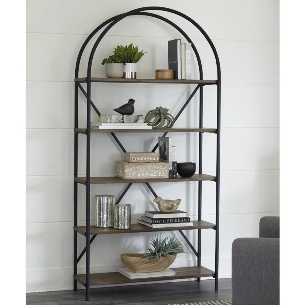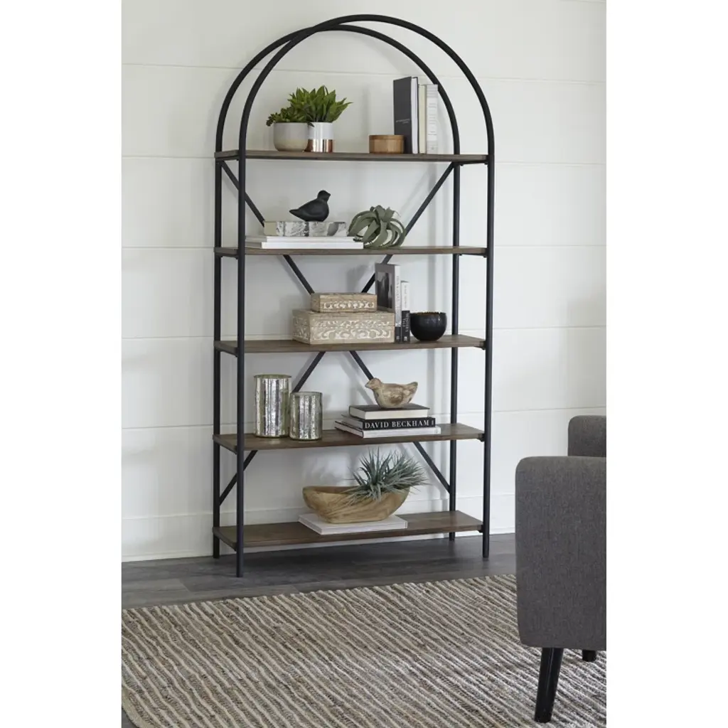 Bring home this beautiful and stylish farmhouse-style bookcase and make your reading time special and beautiful while you pick your reading material from this attractive bookcase. The bookcase consists of 5 wooden open shelves and has a metal frame. This piece can be placed in your study room and upgrade its aesthetics.