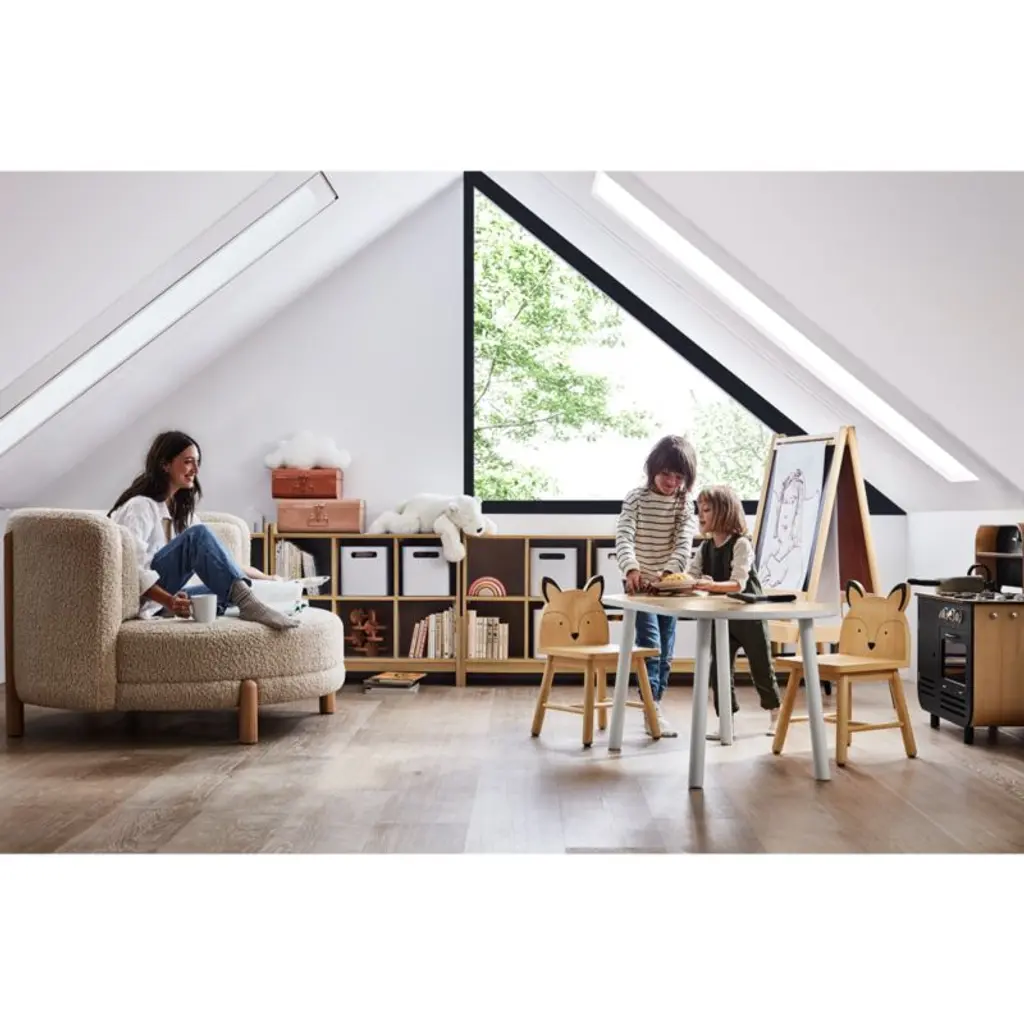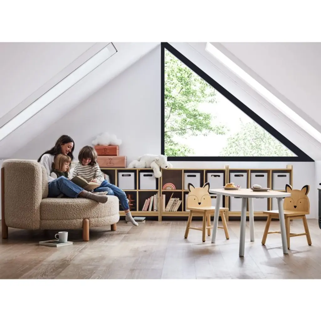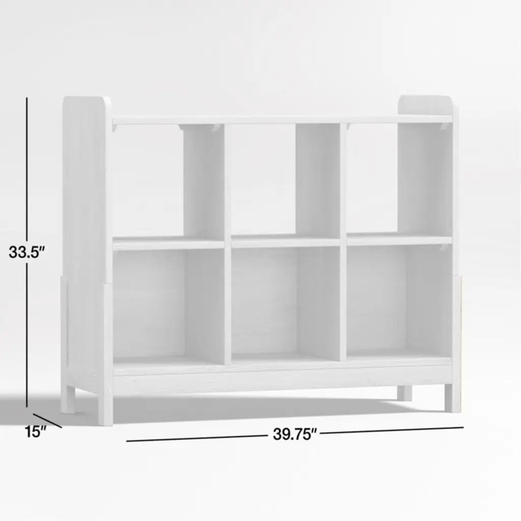 With a compact horizontal design and modern mix of opened and closed storage, our Rue 6-Cube Low Bookcase is a versatile decluttering essential. The neutral hue is perfect for nurseries and kids rooms, and the natural oak graining adds warmth and texture. Situate the bookcase against a wall or in a corner, or fit it into kid nooks and alcoves. The six compartments are designed to accommodate our cube storage containers (sold separately), allowing for easy organization and quicker clean-up times. Plus, you can display their favorite toys, kids decor and books along the top.