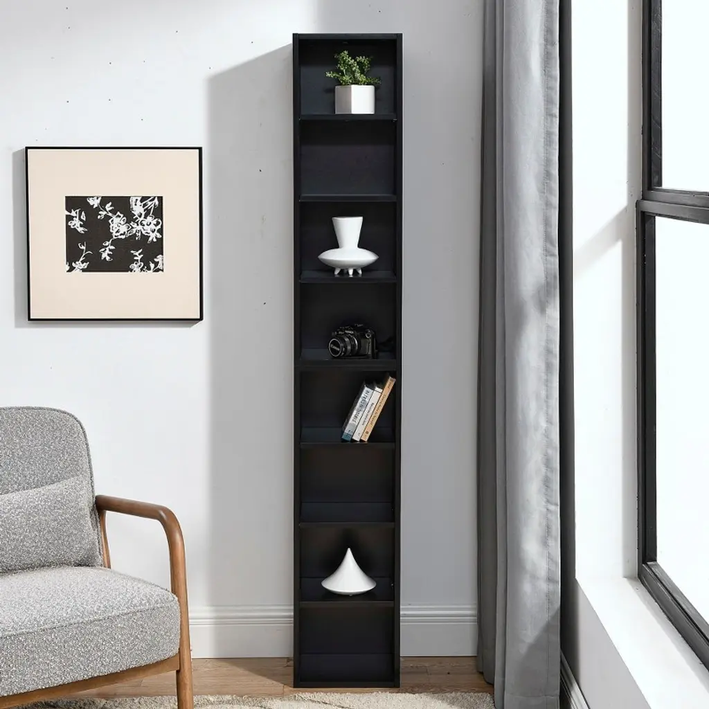 Sapphtopaz 8-tier Storage Rack With Adjustable Shelves Display Storage Cabinet Multi-function Narrow Bookcase Tower Rack For Living Room,bedroom,black