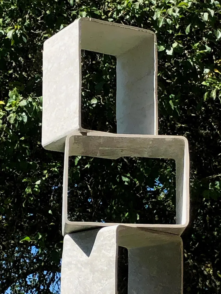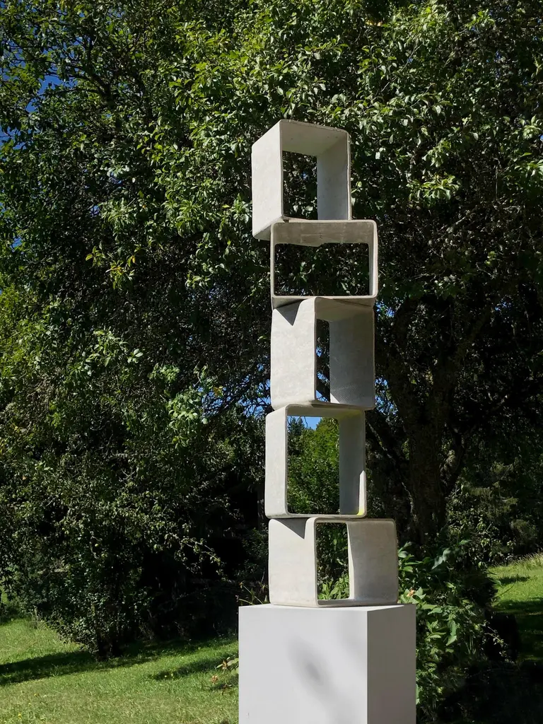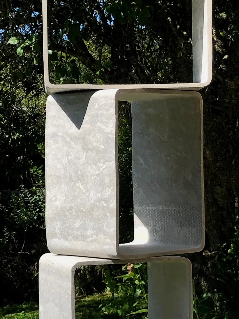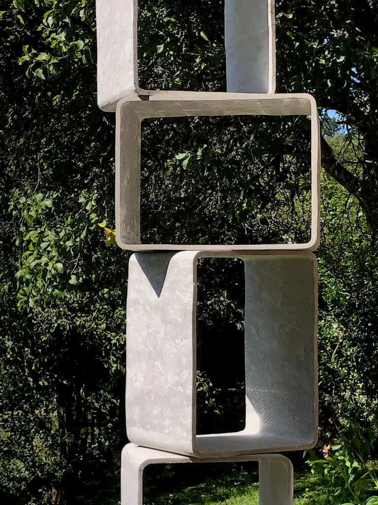 A set of 5 (on a total of 20 identical pieces!!!) modular concrete bookcases, Modernist, Free Form, Brutalist, rectangular loop cases with rounded edges, with a great grey patina with subtle white paint residues, by Willy Guhl for Eternit, Swiss 1970. These rectangular pieces can be placed horizontally or vertically, to create various combinations from low cabinet to vertical columns as here on picture. 4 sets of 5 bookcases (so a total of 20 pieces!) are available on sale, allowing to create a potentially major wall bookcase or storage.These pieces can be used indoor as well as outdoor.DIMENSIONS : H 32 x L 41.7 x P 27 cm per pieceThis set of 5 pieces allows a line of about 2 meters, horizontally or vertically.