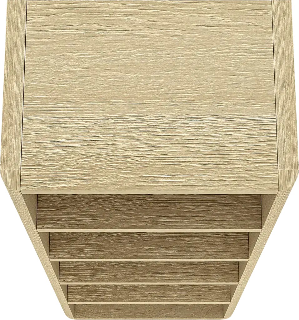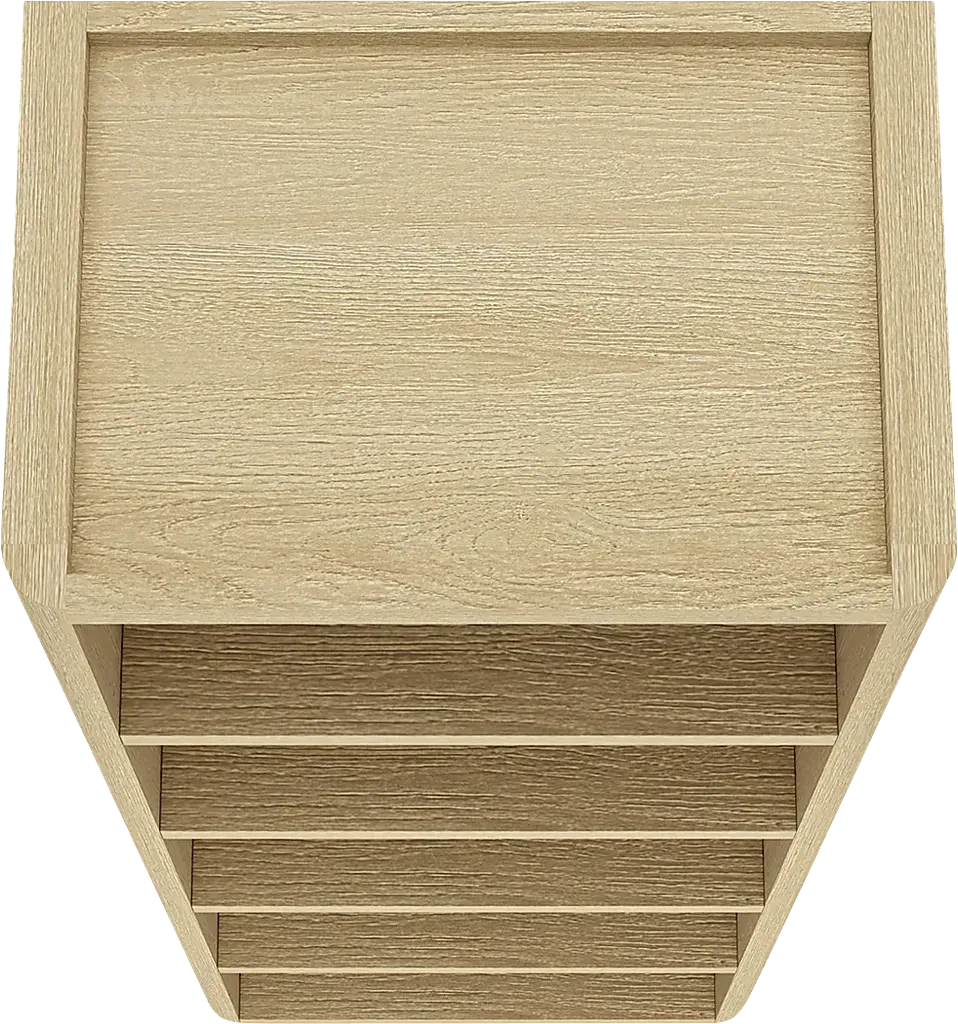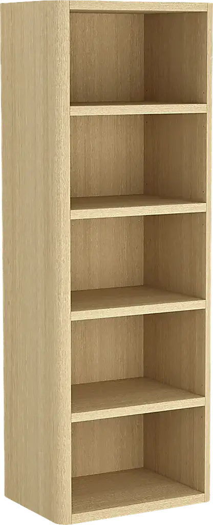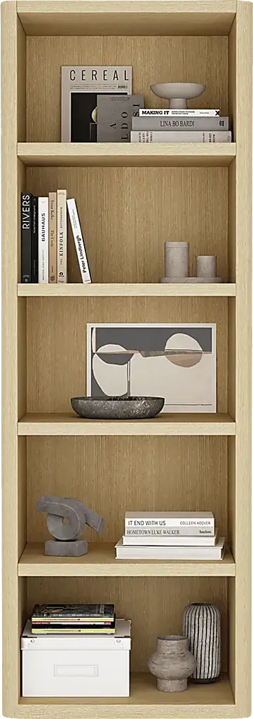 The Shadebooks I natural bookcase brings grounded elegance and tactile richness to modern interiors. With a focus on sculptural form and refined simplicity, each piece features clean lines, tailored silhouettes, and signature cutout pulls that double as subtle design statements. This bookcase is thoughtfully crafted with adjustable shelving and ample storage, offering functionality without compromising on style. Finished in warm, wood-grain tones, Shadebooks is designed to blend seamlessly into any space. Timeless yet distinctive, this piece offers a harmonious balance of quiet beauty and everyday utility. Customer assembly is required.