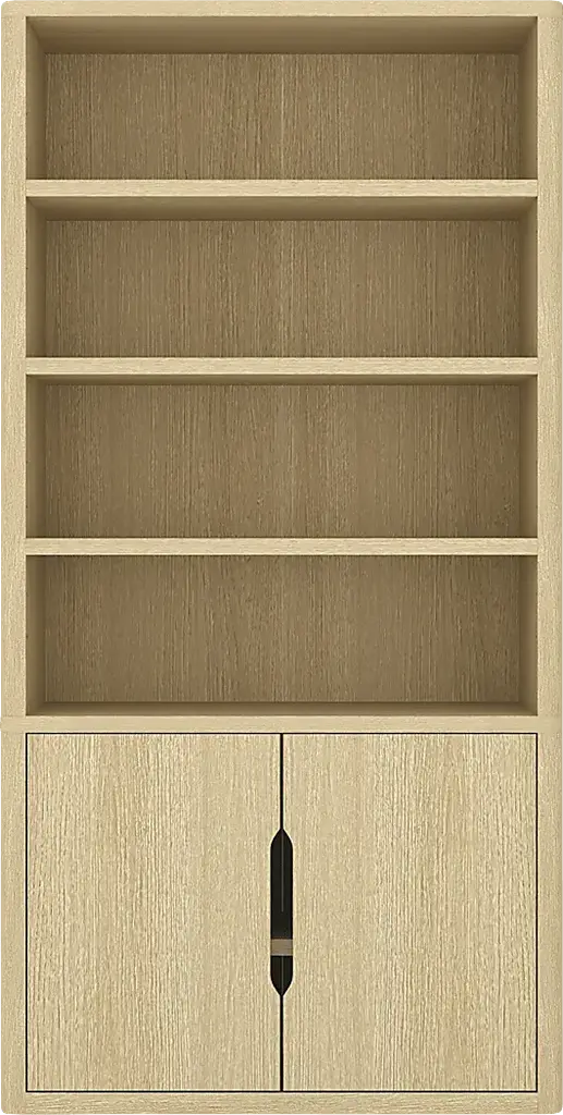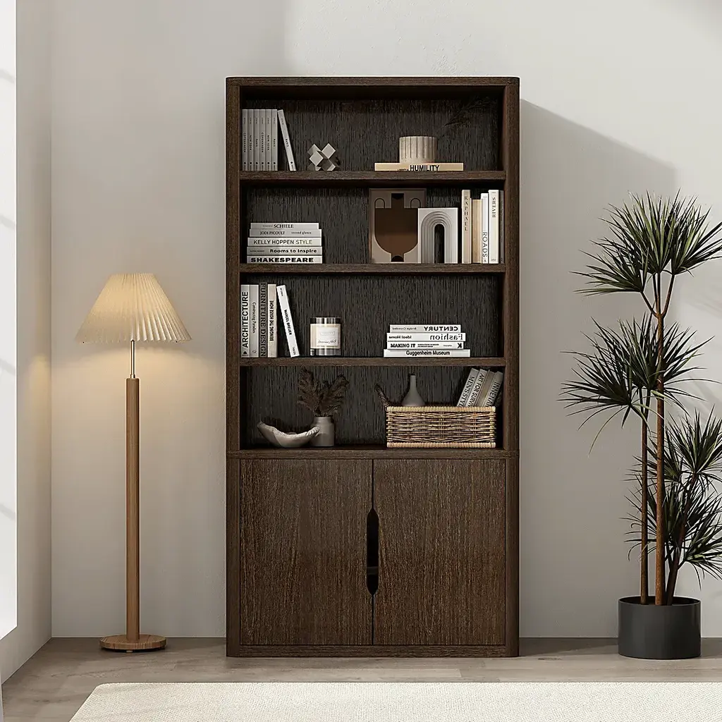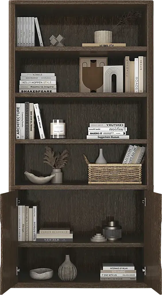 The Shadebooks IV brown bookcase brings grounded elegance and tactile richness to modern interiors. With a focus on sculptural form and refined simplicity, each piece features clean lines, tailored silhouettes, and signature cutout pulls that double as subtle design statements. This bookcase is thoughtfully crafted with adjustable shelving and ample storage, offering functionality without compromising on style. Finished in warm, wood-grain tones, Shadebooks is designed to blend seamlessly into any space. Timeless yet distinctive, this piece offers a harmonious balance of quiet beauty and everyday utility. Customer assembly is required.
