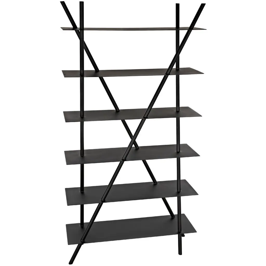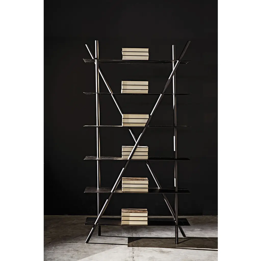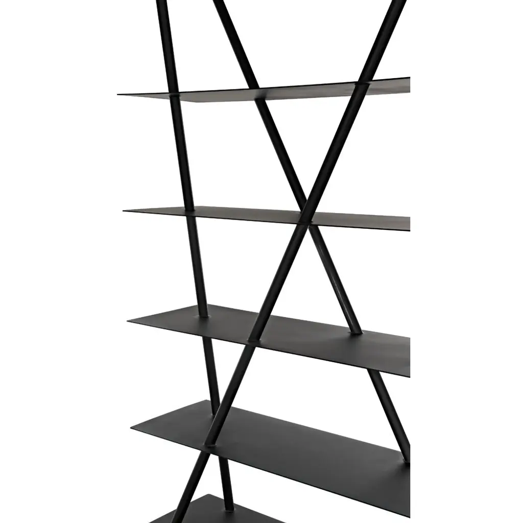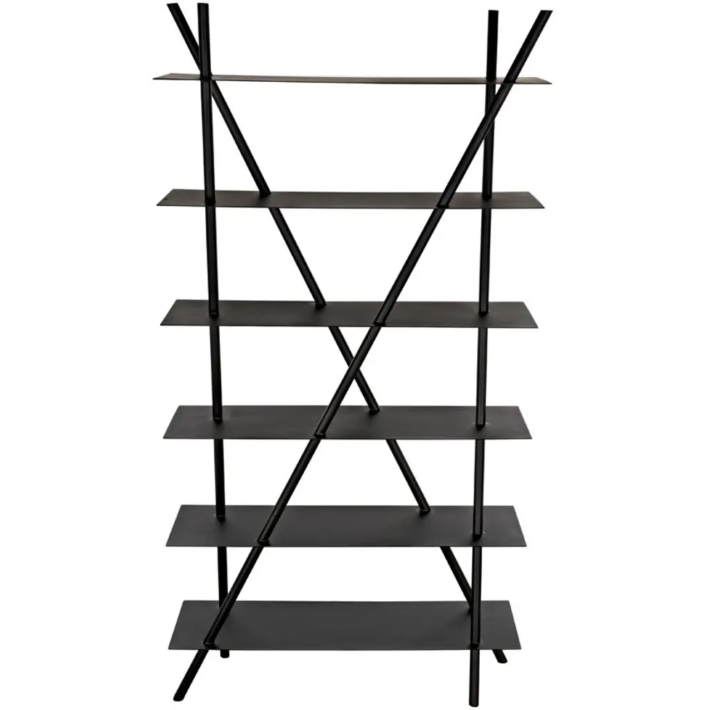 This pared down, industrial inspired bookcase is the essence of simplicity. Handcrafted of metal with a deep black finish, it is sleek, sophisticated, and very contemporary.