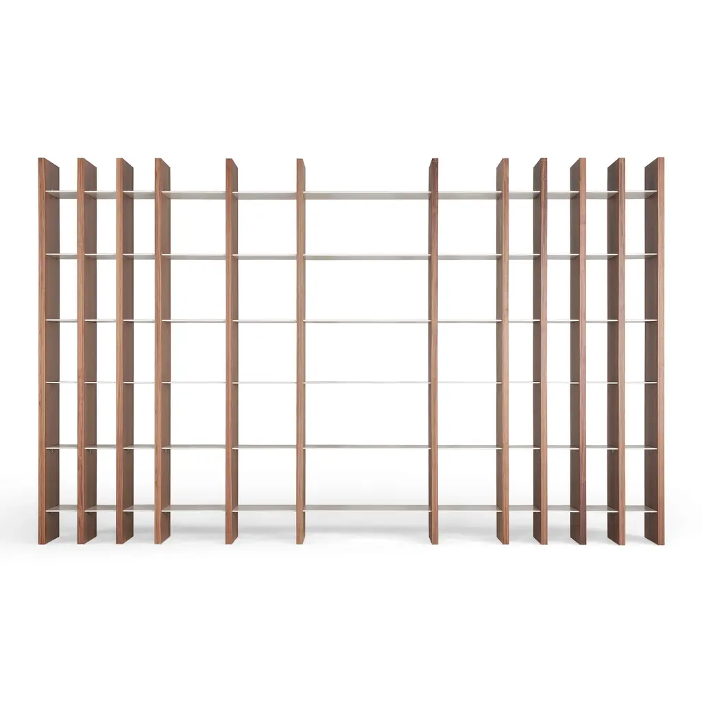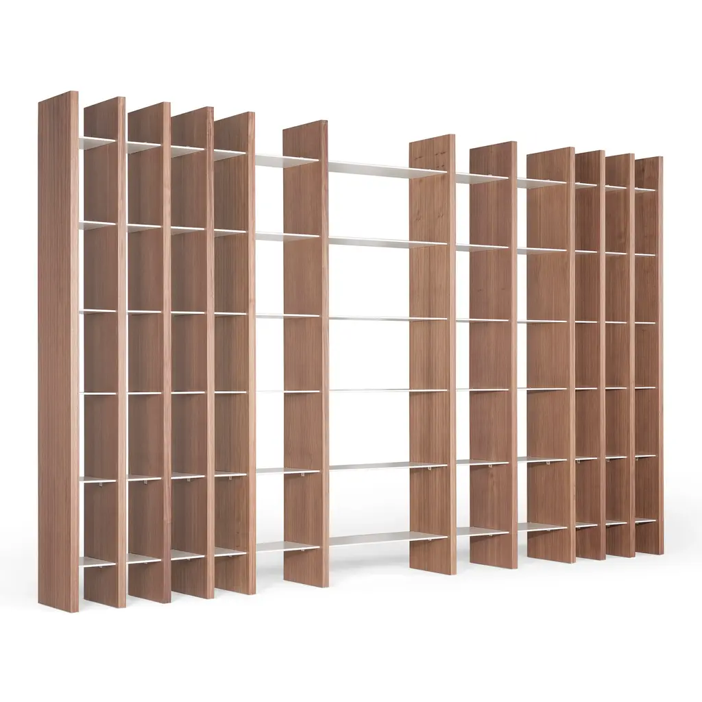 The Sistema Parere Bookcase from Amura offers an innovative system of customizable design and arrangement. It is a "modular accordion" that accommodates various storage and display needs by adjusting width and height. Its attractive combination of materials can accentuate any living space, from a home to a professional environment. Experience the freedom to express your vision of design and space with this modern bookcase. Highlights