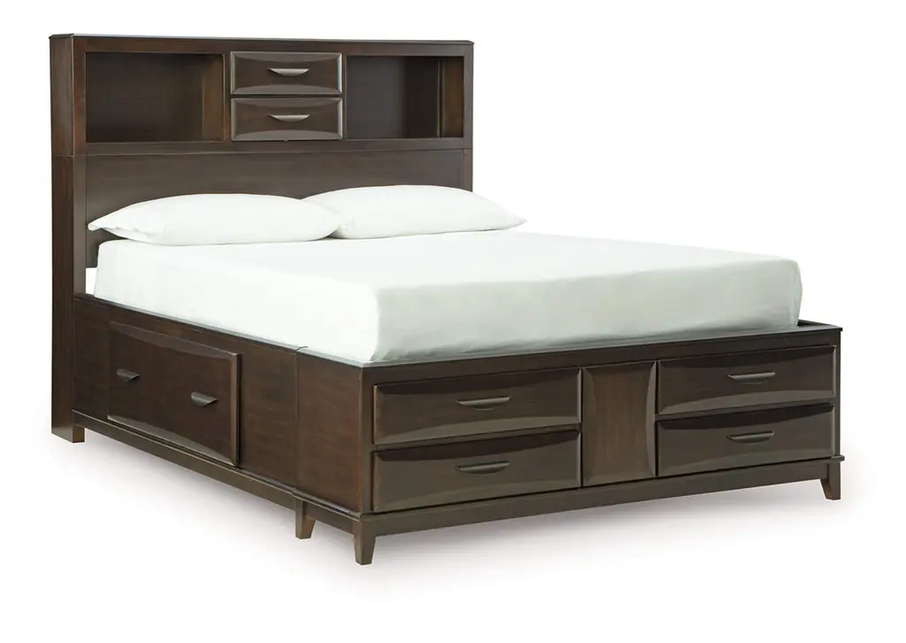 Add style and storage to your bedroom with the Sloane collection. The drawers feature smooth ball bearing glides for easy access, and polished nickel hardware, and the upholstered footboard storage bench is the perfect spot for extra blankets. Save space but still have room to do projects or homework with a desk and stool that are hidden in the headboard.