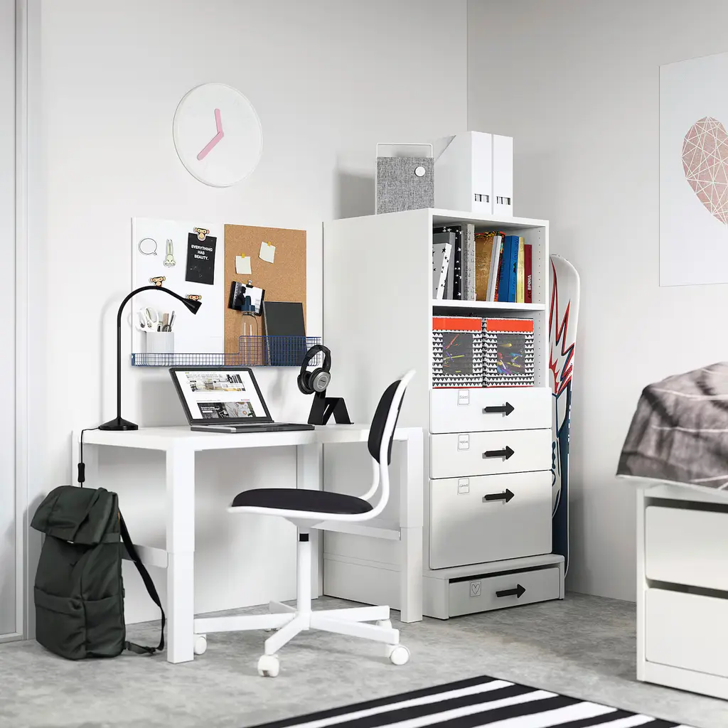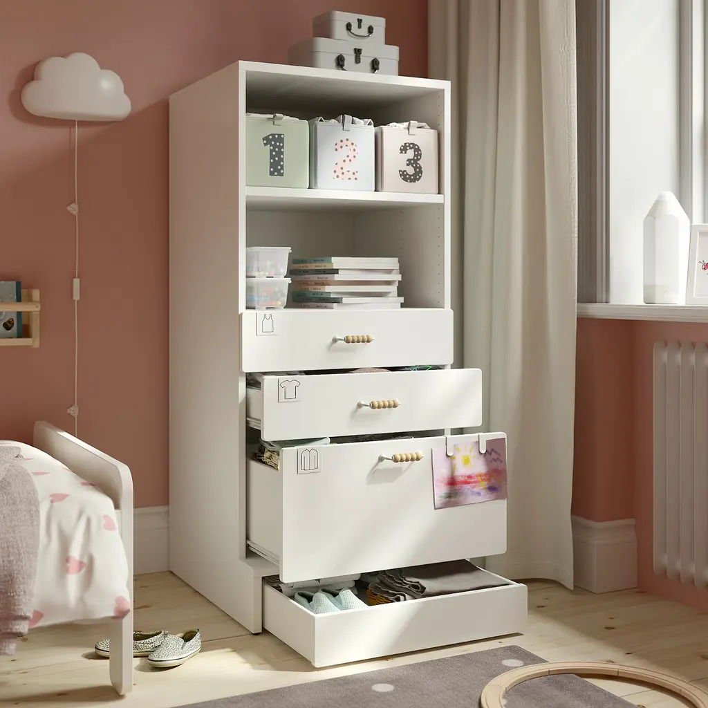 SMÅSTAD / UPPFÖRA Bookcase - white white/with 3 drawers 23 5/8x25 5/8x53 1/2 ". The open shelves are perfect for books and collectables, or to display the latest arts and crafts project – and since your child can see them, their desire to play is stimulated. Knobs and handles are sold separately.