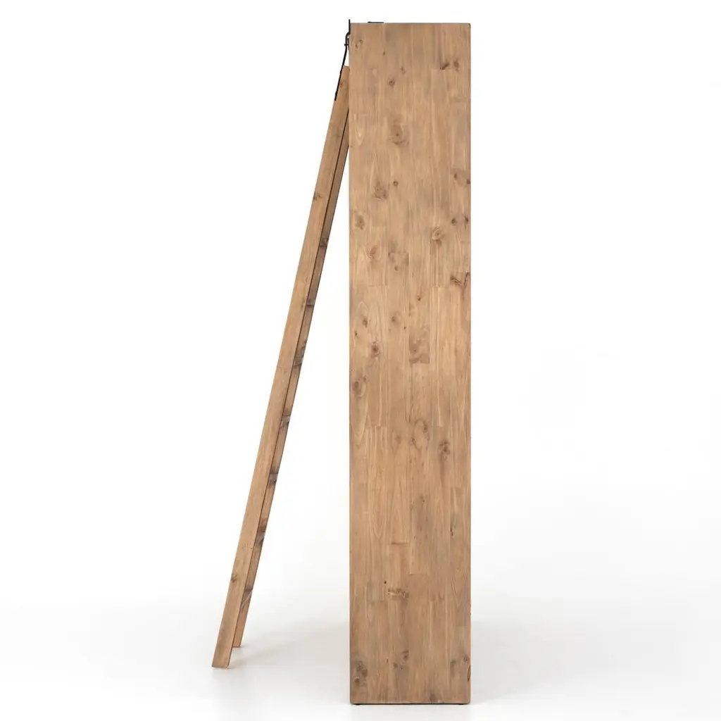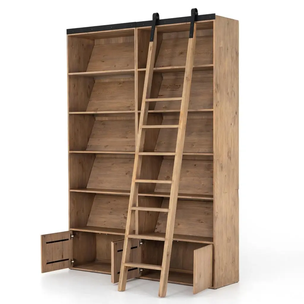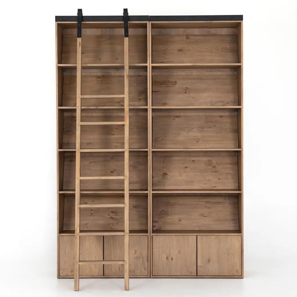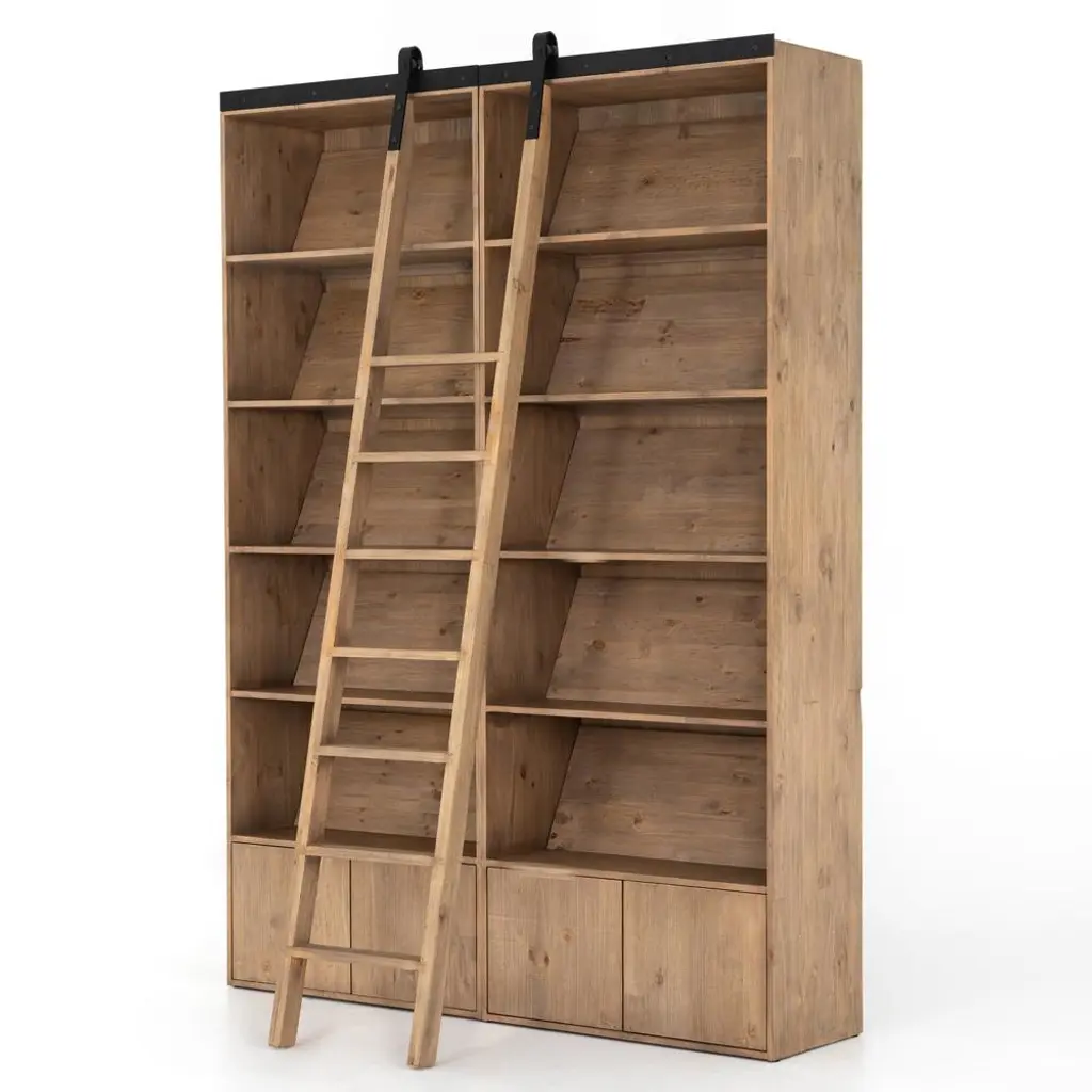 Smith Rustic Lodge Light Brown Wood Double Bookcase With Ladder