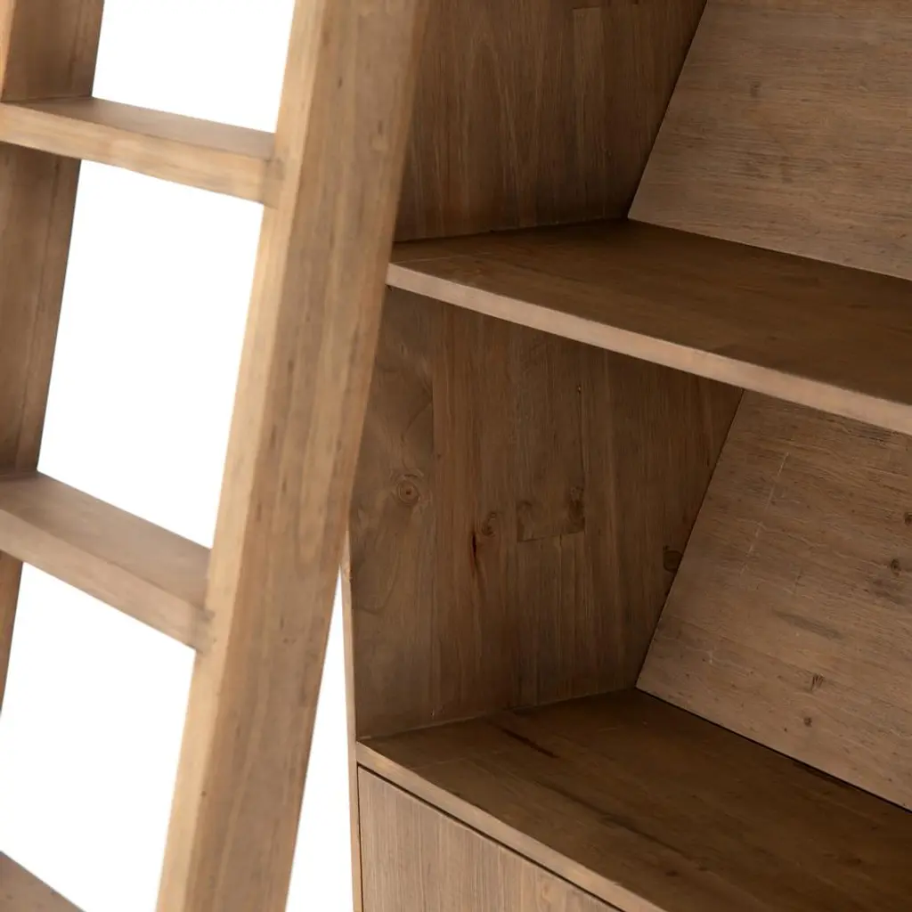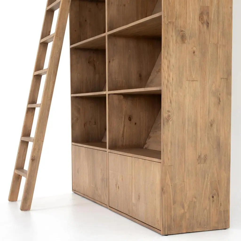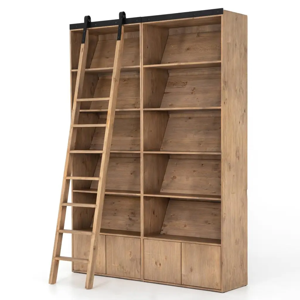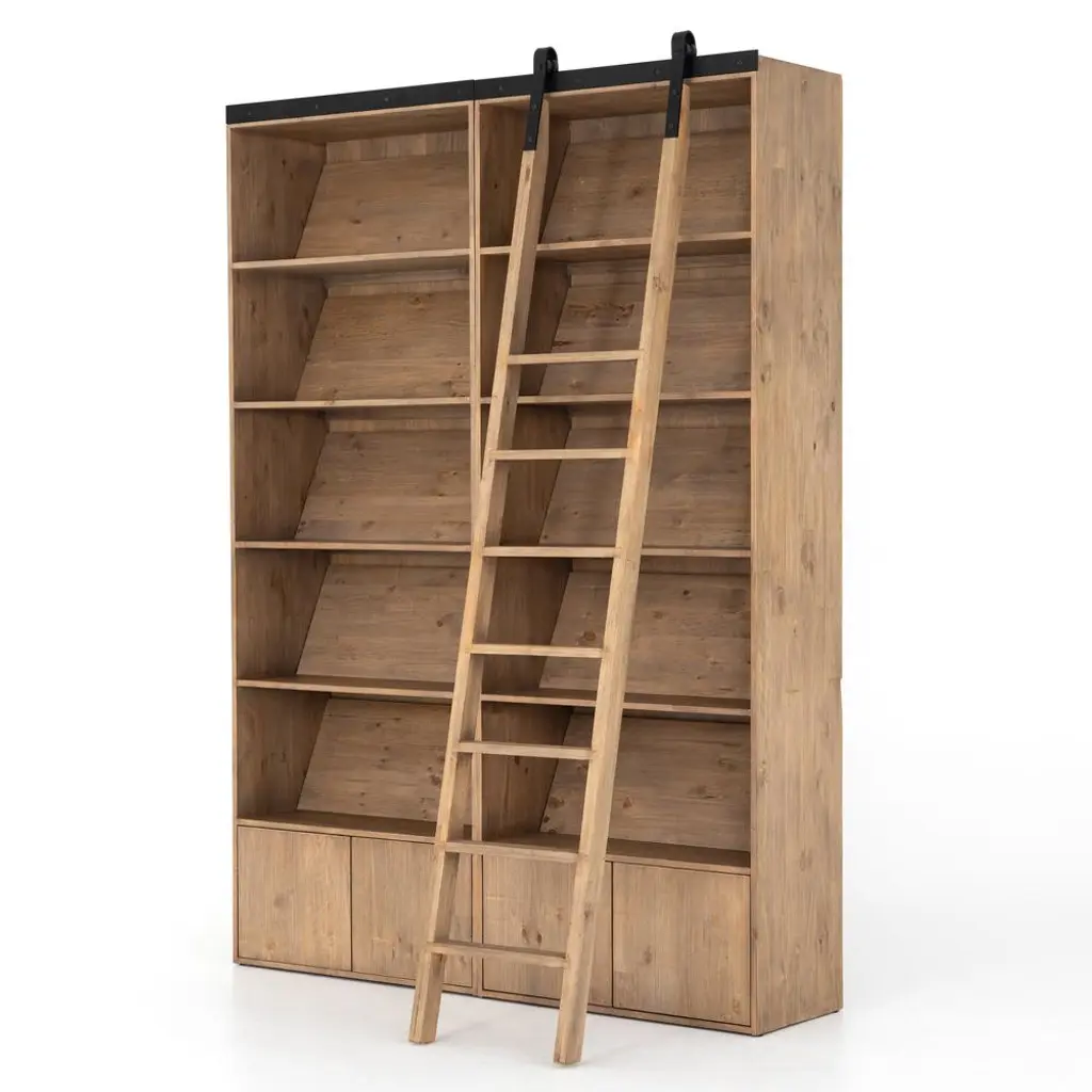 Smith Rustic Lodge Light Brown Wood Double Bookcase With Ladder