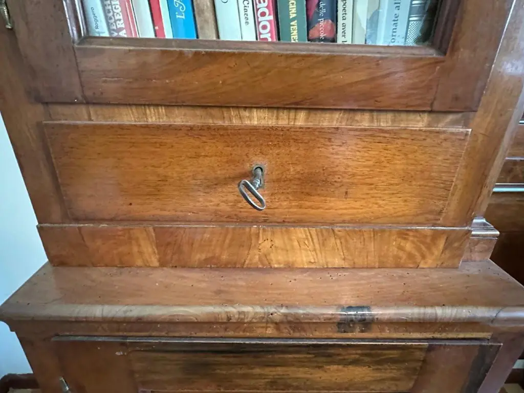 Solid Walnut "Bridge" Bookcase - Veneto, Early Decades Of The 19th Century