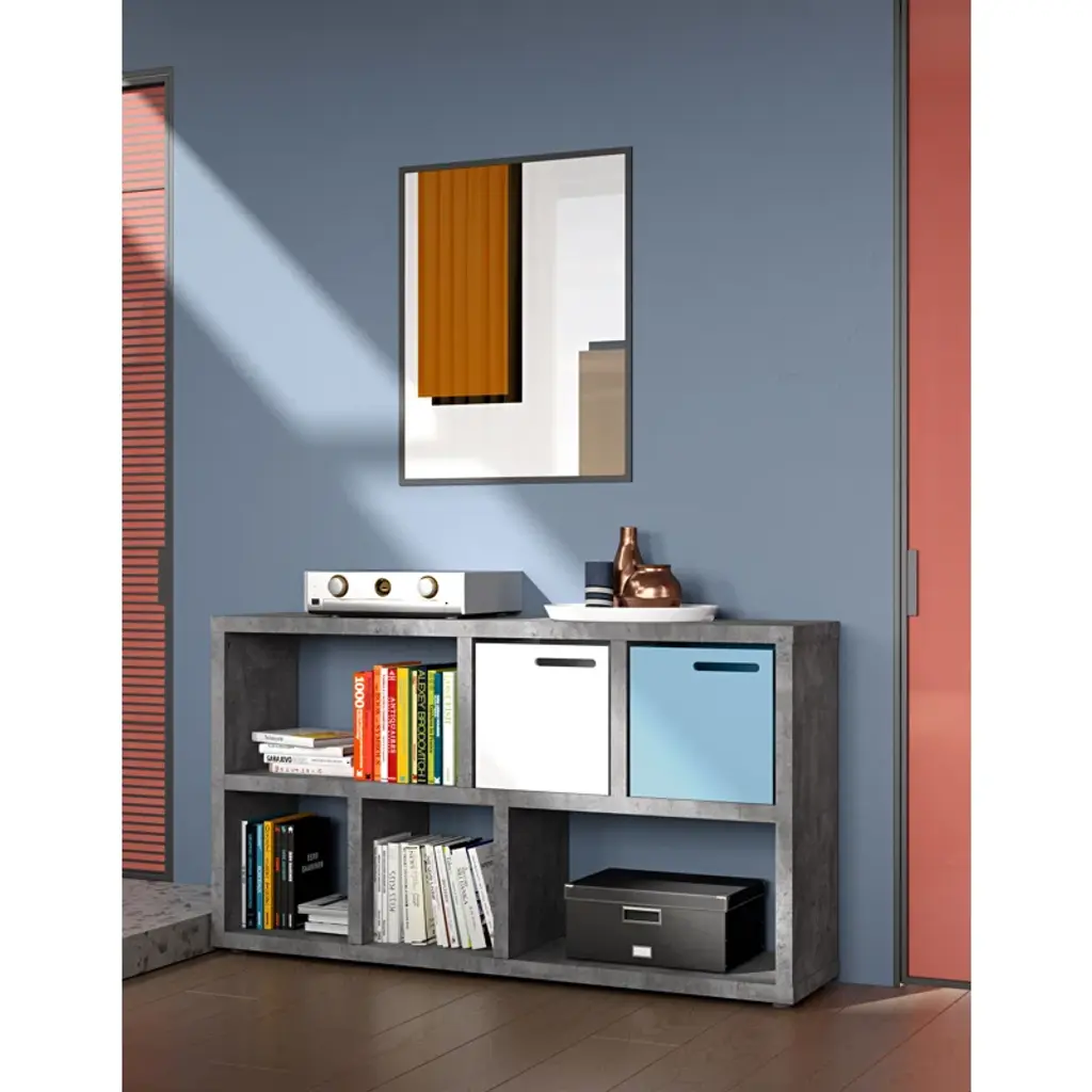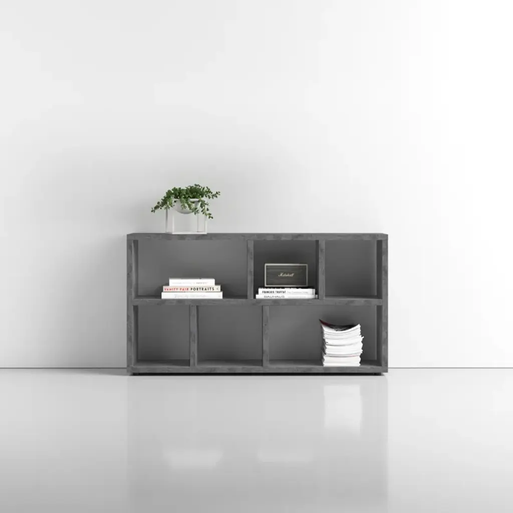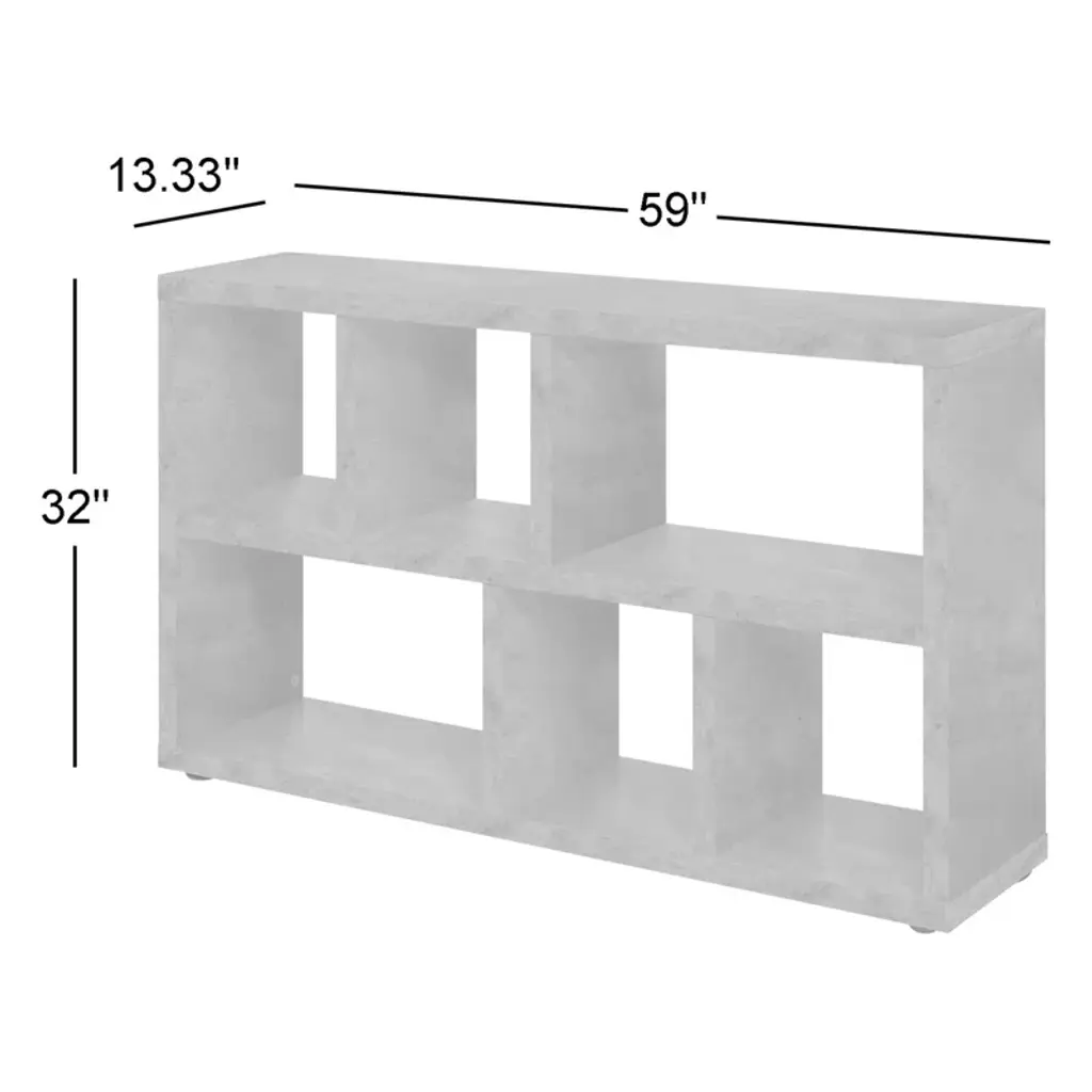 Get back to basics with this pared-down bookcase that focuses on clean lines and versatile storage options. Crafted from engineered wood, this bookcase features a clean-lined, boxy silhouette with two tiers of shelving and six asymmetric cubbies. Those cubbies let you display decor, house storage baskets, or organize your space. The variety of finish options keeps this piece versatile. This bookcase measures 59'' wide and 13'' deep, making it well-suited to narrow spaces like hallways and entryways.