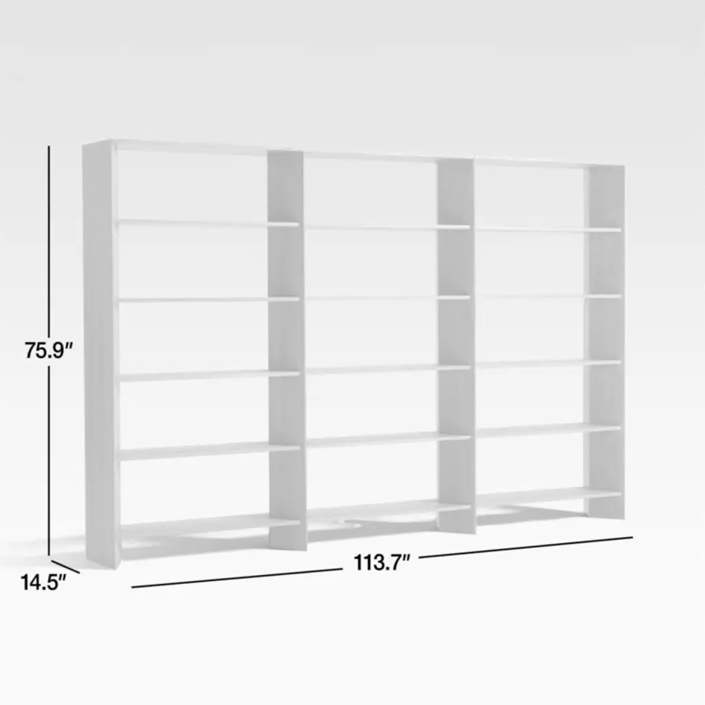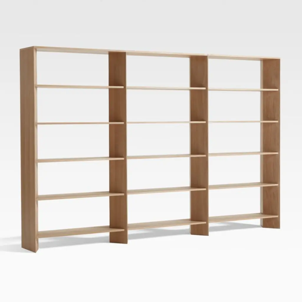 Terrazza 114" Natural Solid Oak Wood 5-Shelf Bookcases, Set Of 3