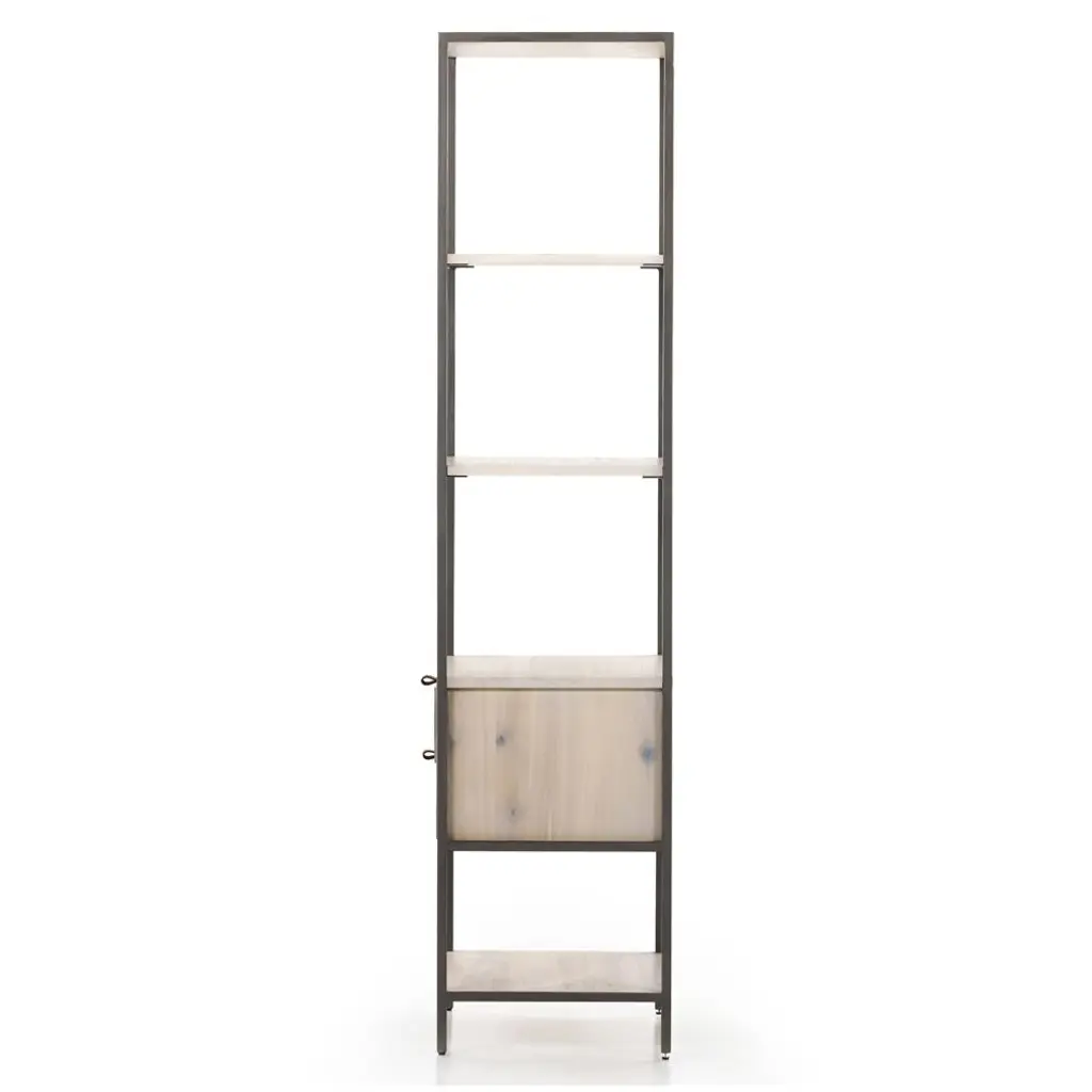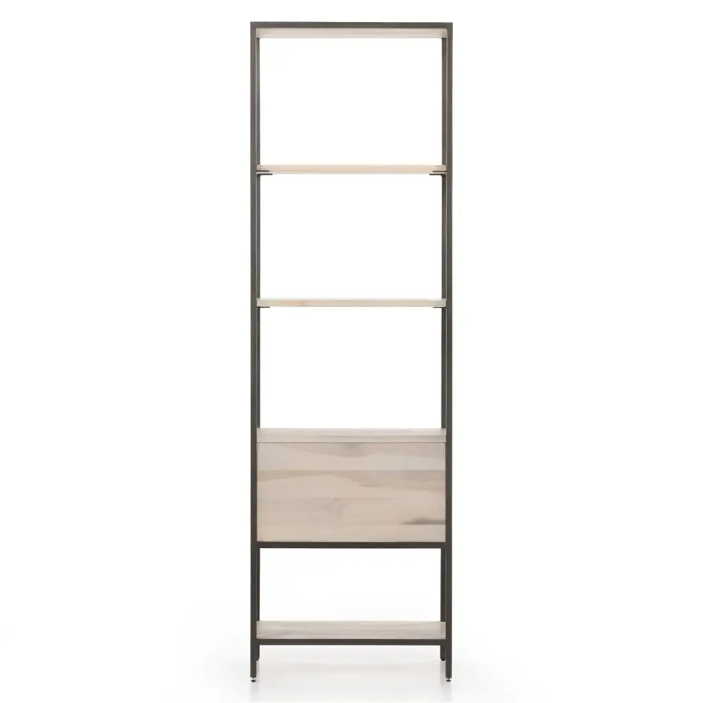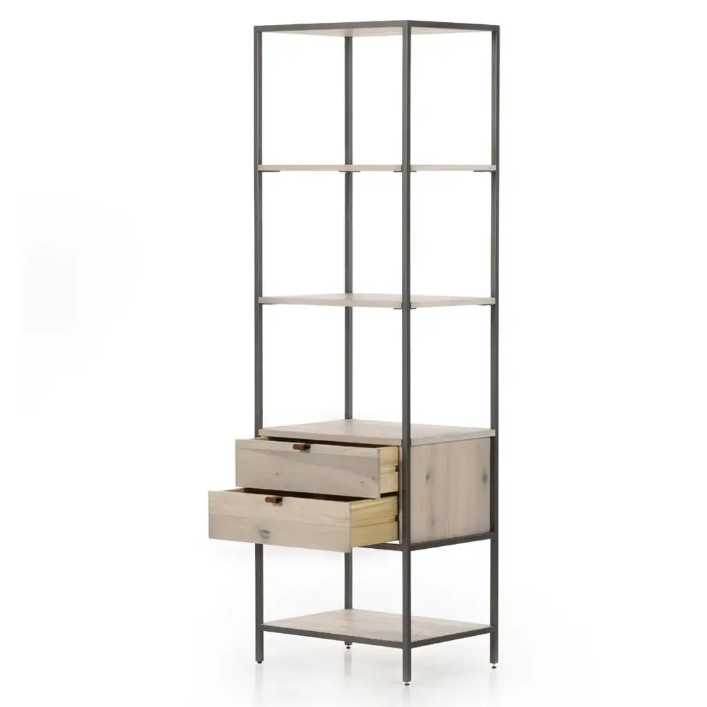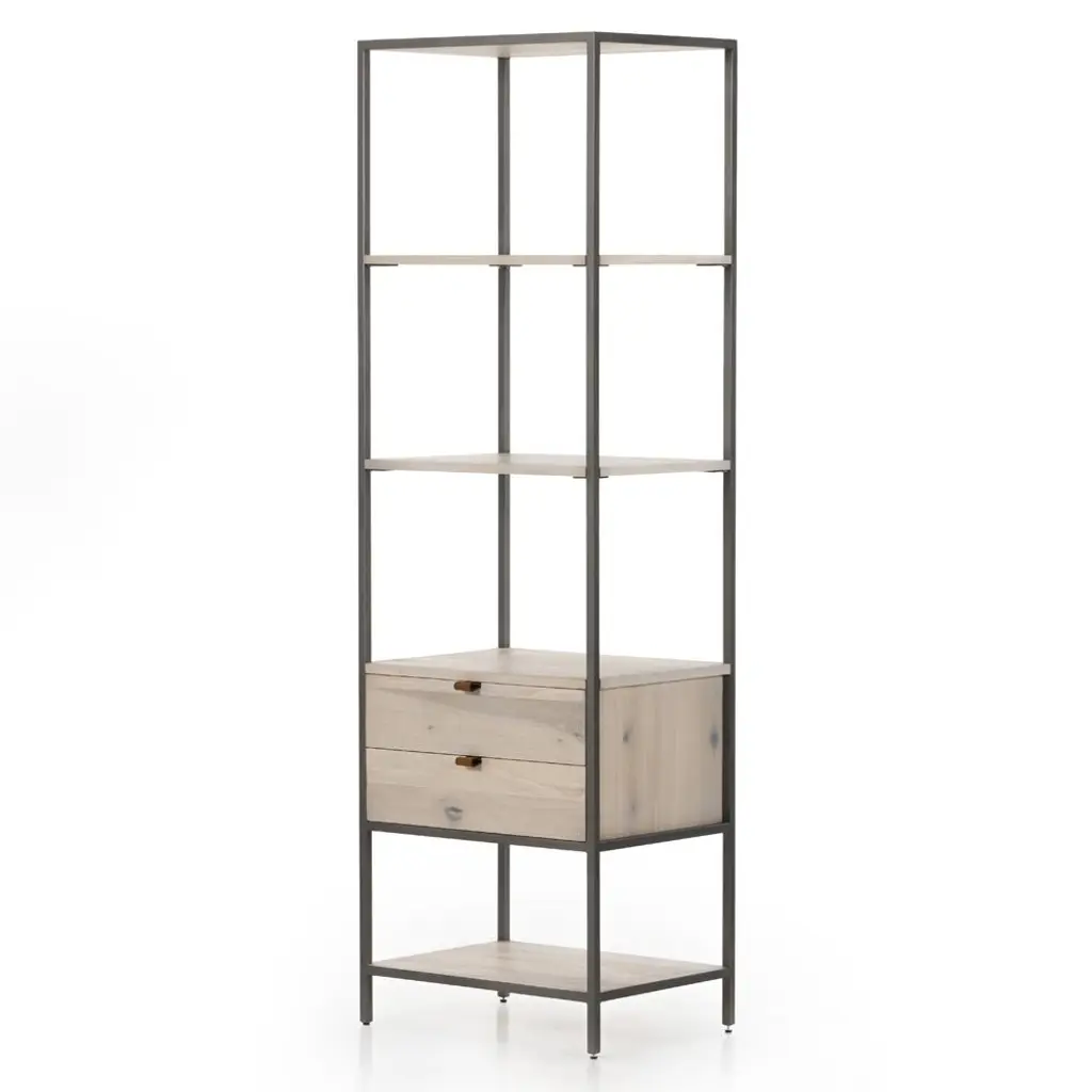 Theodore Industrial Loft Dove White Wood Grey Iron Frame 2 Drawer Display Bookcase