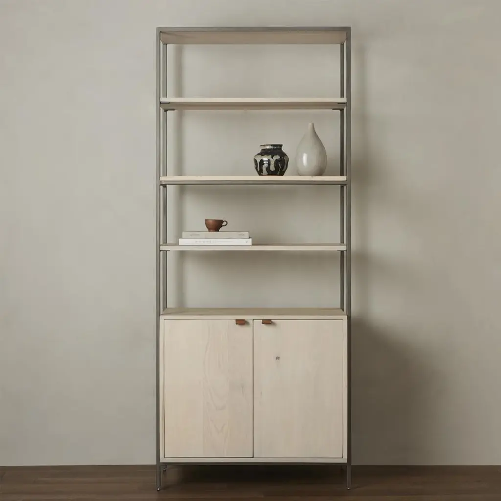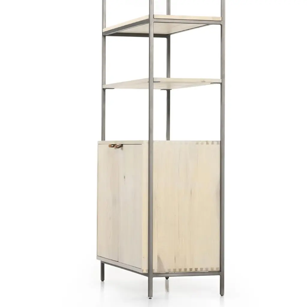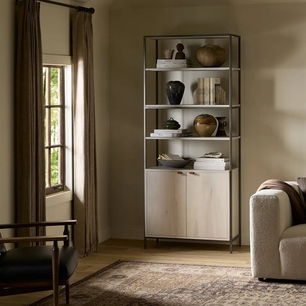 Theodore Industrial Loft Dove White Wood Grey Iron Frame Open Back Bookcase
