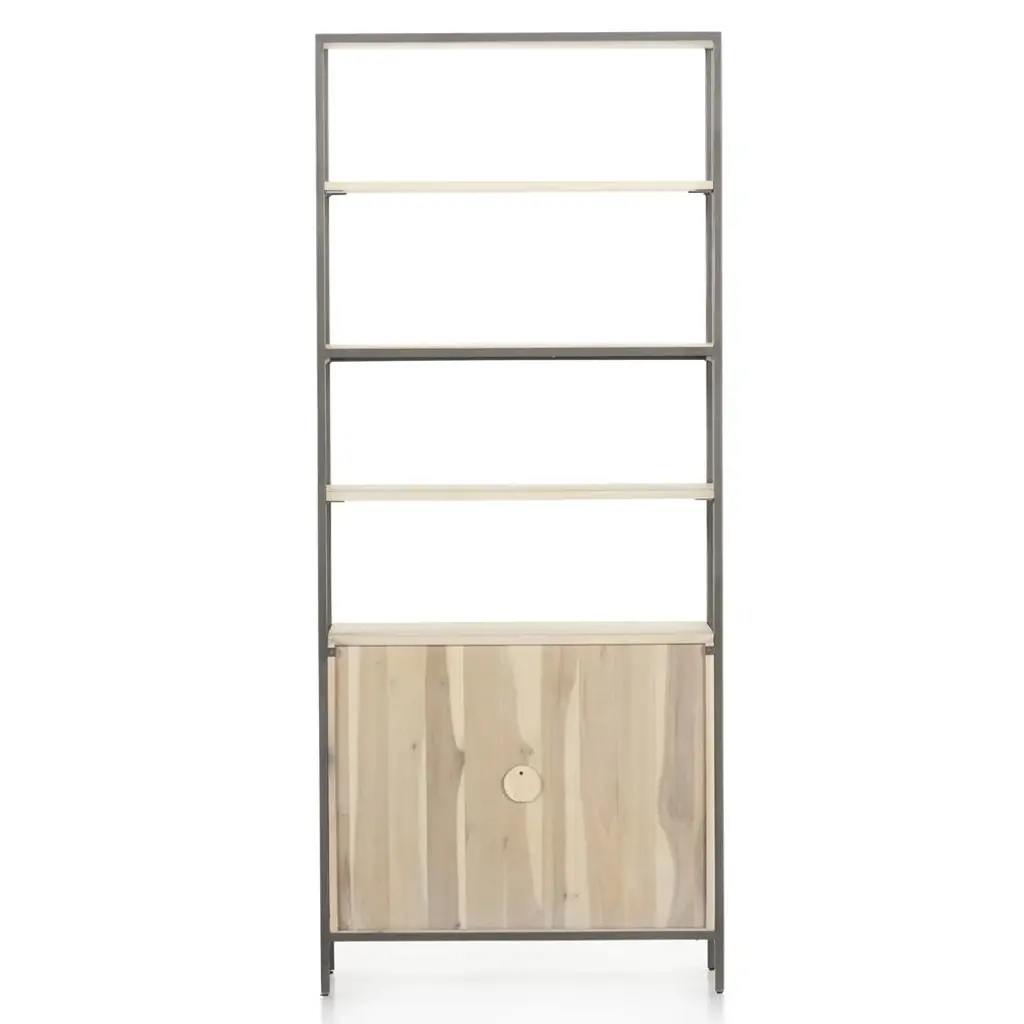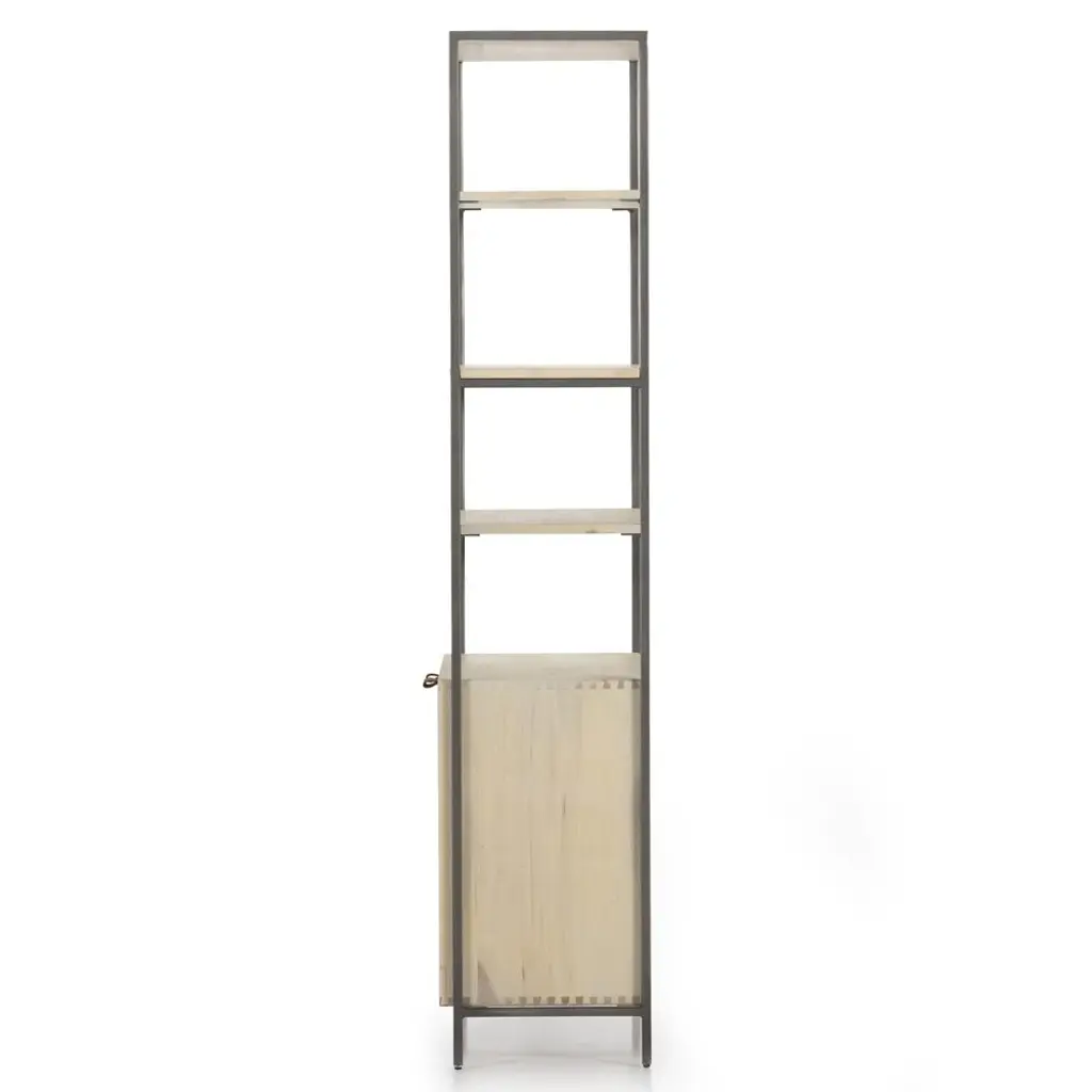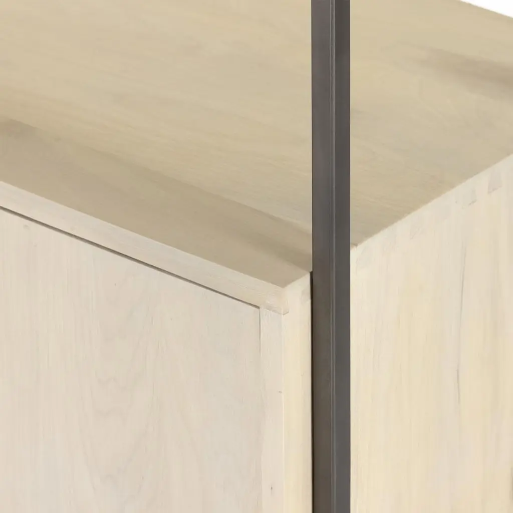 Theodore Industrial Loft Dove White Wood Grey Iron Frame Open Back Bookcase