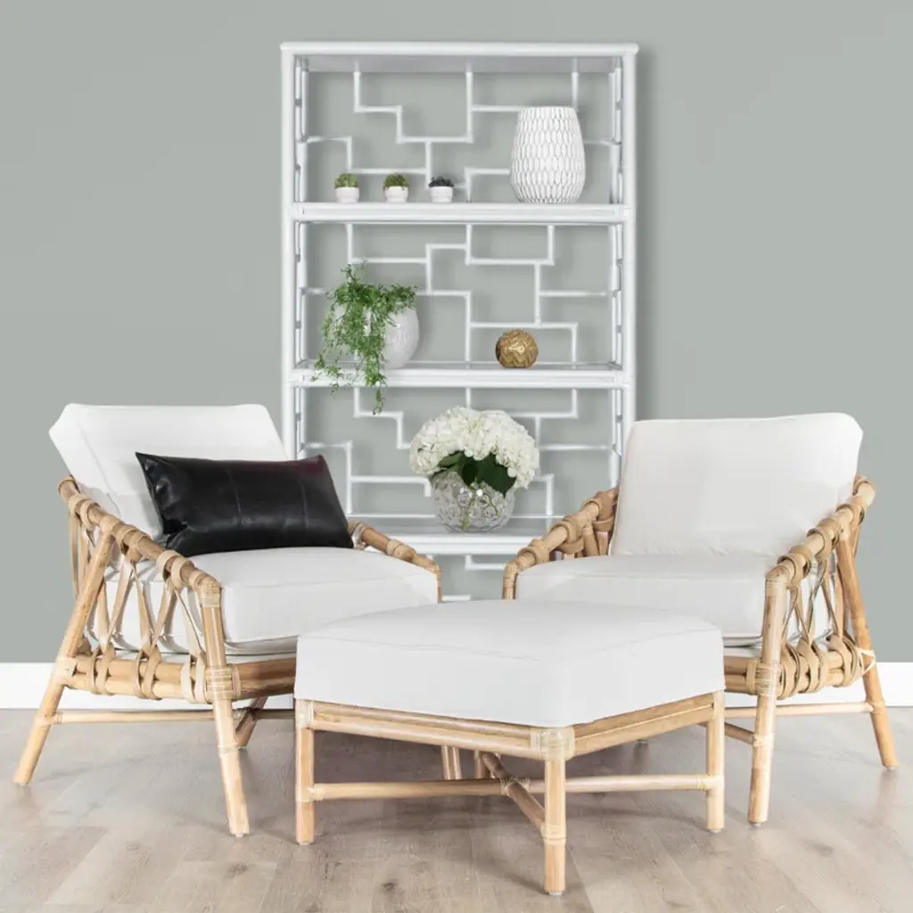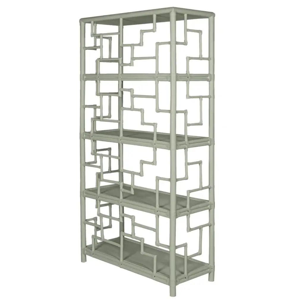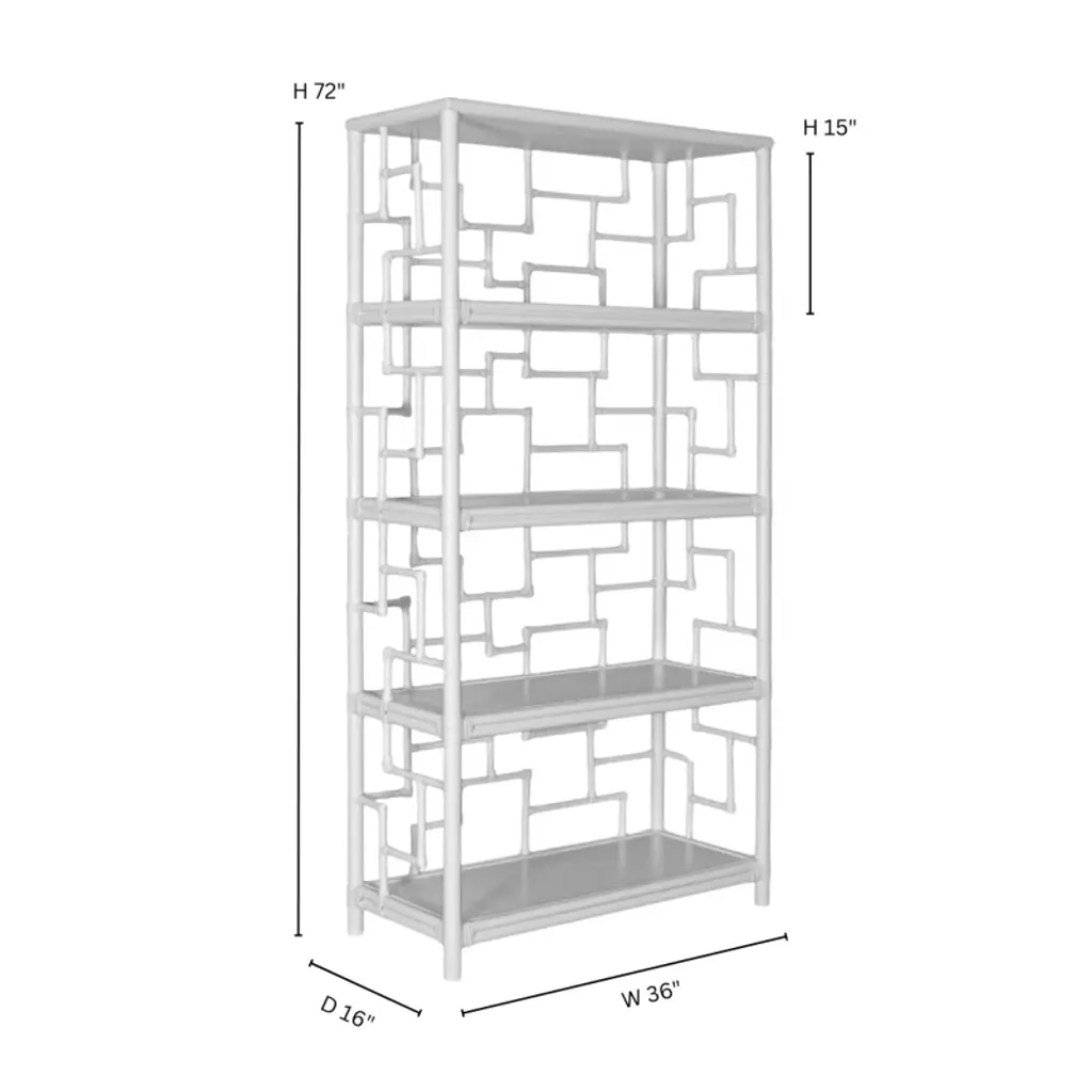 A modern take on classic rattan styling, this etagere bookshelf flaunts a rattan frame with impressive fretwork and rawhide wrapped joints for added style and support. This etagere bookshelf features four wood shelves to provide space for decorative accessories, photos or a library of your favorite novels. This etagere bookshelf will instantly add character and charm to any indoor space such as a living room, office, bedroom or hallway. Each etagere bookshelf is hand-finished to order just for you!
