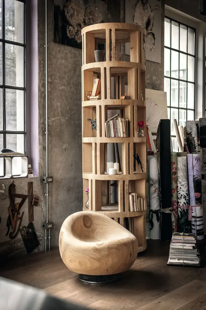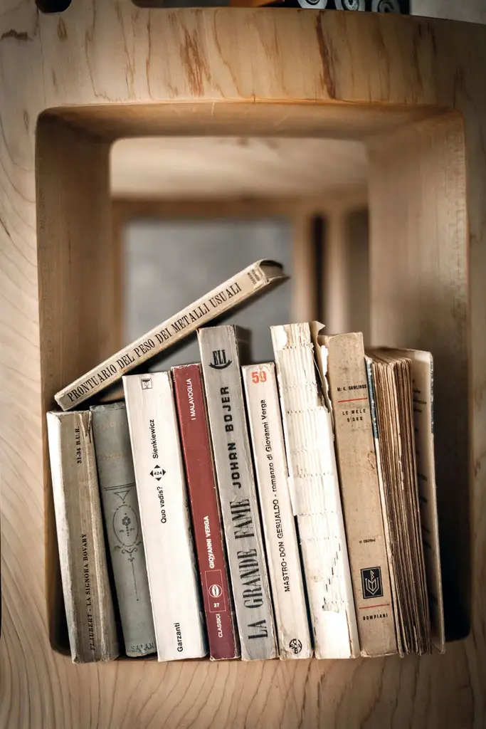 Torre Lignea is a bookshelf in a single block of scented cedar with a linear column design and different levels that create space for the compartments. The base has a rotating plate to enable 360° use.AVAILABLE FINISHES:A7: cedarA9: cedar contract finish, vulcano cedar