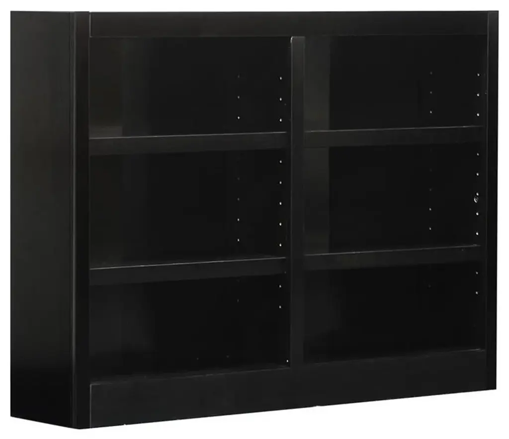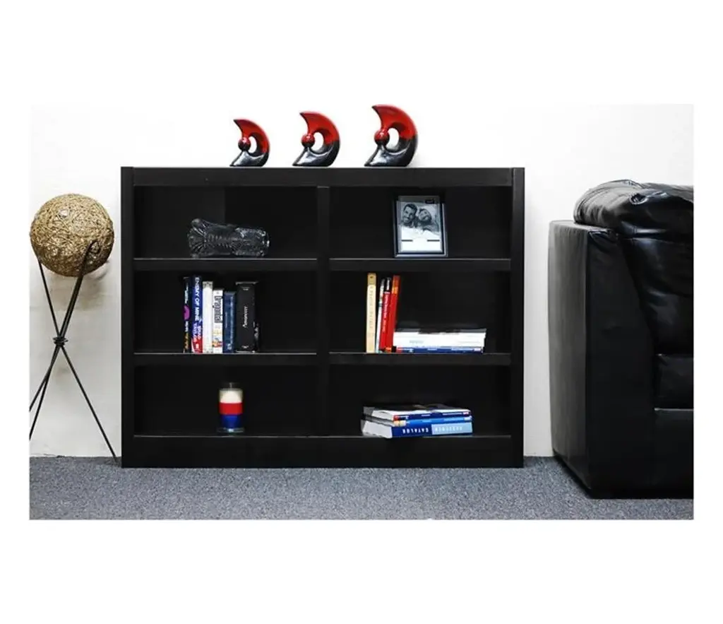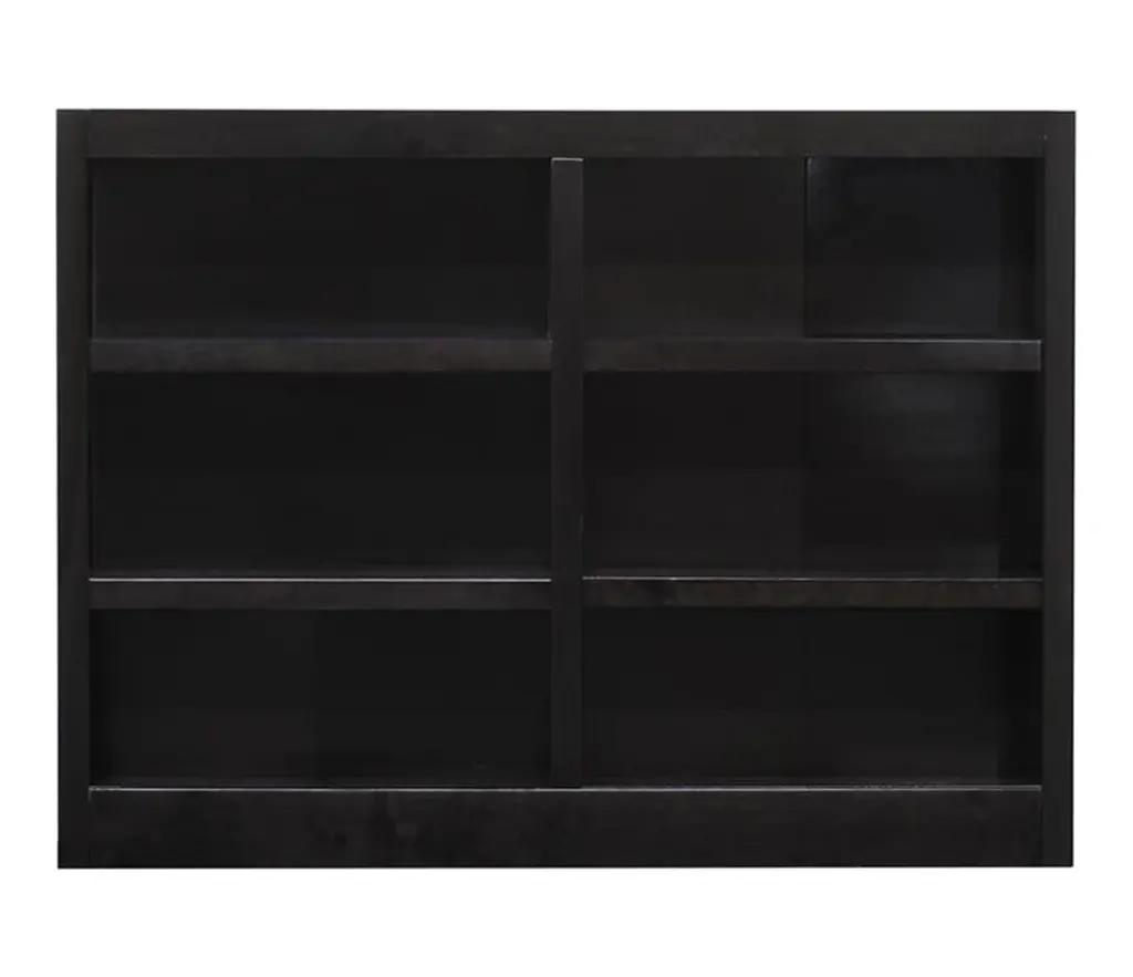 The Concepts in Wood 6 shelf double wide Bookcase has a beautiful 10 step finish on wood veneer that really sets this bookshelf apart from the rest and utilizes an environmentally friendly zero VOC emissions finish process. This is a piece of furniture using solid wood trim pieces and wood veneer panels versus all the paper laminate varieties out there. Very durable with 70lb. weight capacity per shelf. 4 adjustable shelves allow you to customize the storage space to accommodate a variety of book sizes and 2 fixed shelves provide structural reinforcement. A dowel and cam lock assembly design ensures a strong durable bookcase. Wood elements are sourced in the USA and assembled in Mexico. This versatile storage bookcase is ideal for home or office use, laundry, bedroom, kitchen, garage or any other room. Ready for assembly.Features:Materials: Genuine wood veneers and solid wood molding10 step polyurethane espresso finish4 adjustable shelves and 2 fixed shelves to accommodate large and small itemsQuick, simple assembly with dowels, camlocks and an engineered wood back panel that is more durable than the cardboard on most ready to assemble bookcasesMaterials are imported from the U.S. and manufactured in MexicoCreate a wall of bookcases, designed to be stacked next to each other as your storage needs growSpecifications:Product Dimensions: 36"H x 48"W x 10.63"DProduct Weight: 83 lbsShelf Weight Capacity: 70 lbs per shelf for superior durabilityNumber of Shelves: 4 (Adjustable), 2 (Fixed)Warranty: 2 yearsAssembly Required: Yes