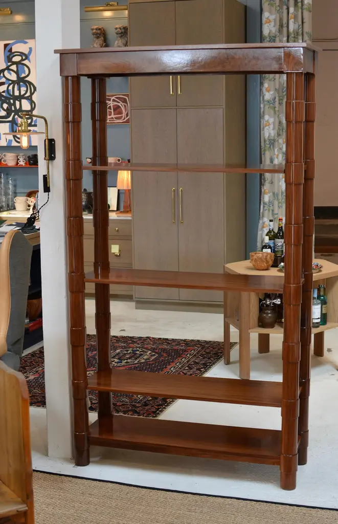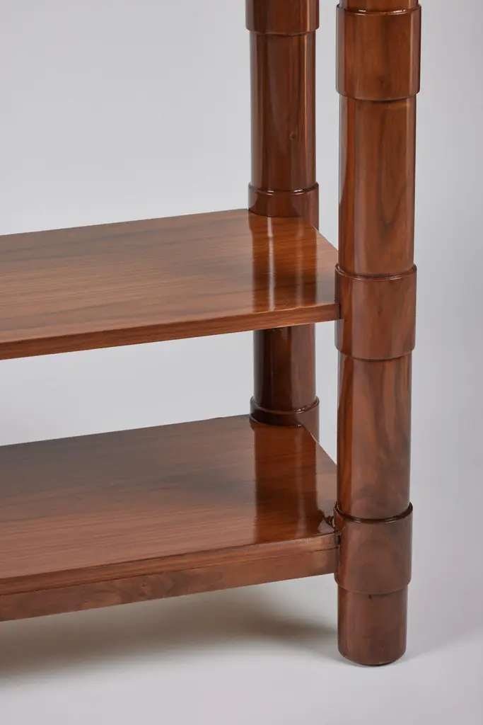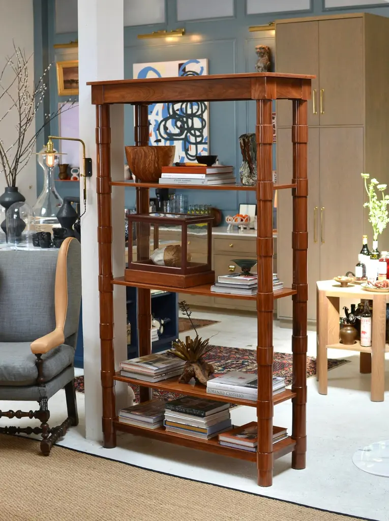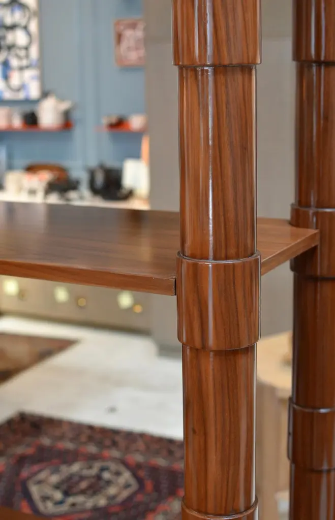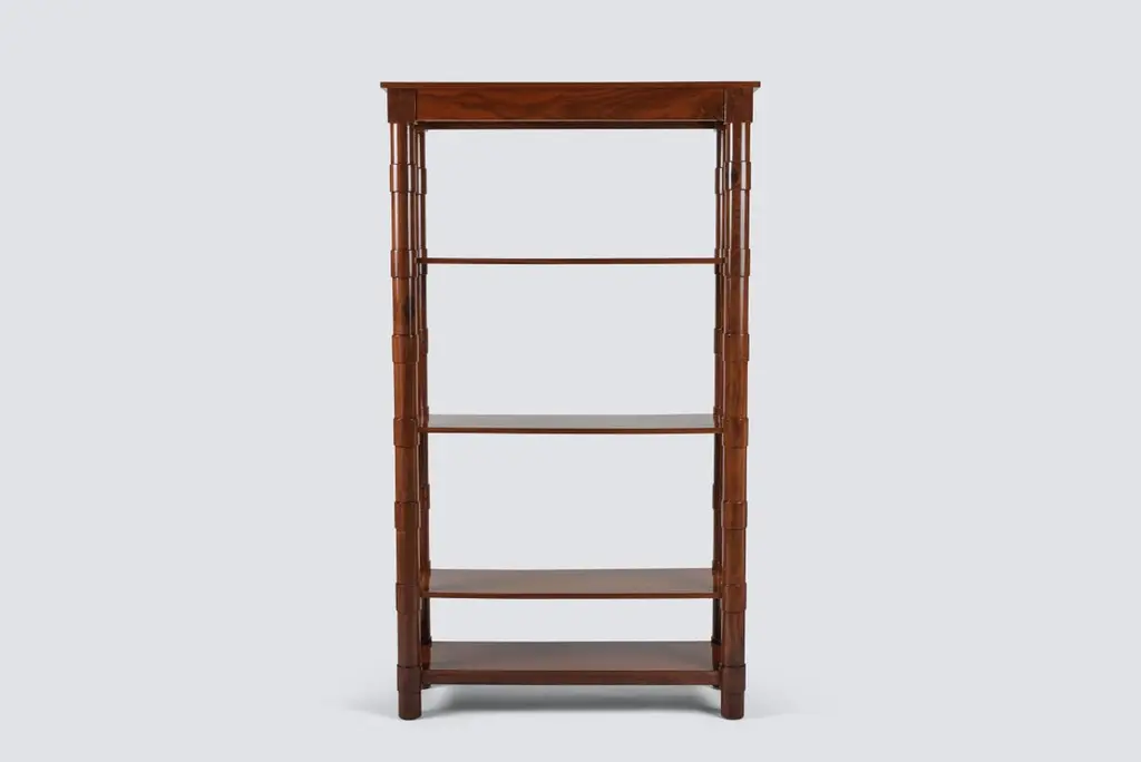 Transitional Turned Frame Jenks Bookcase By Martin Brockett In High-Gloss Walnut