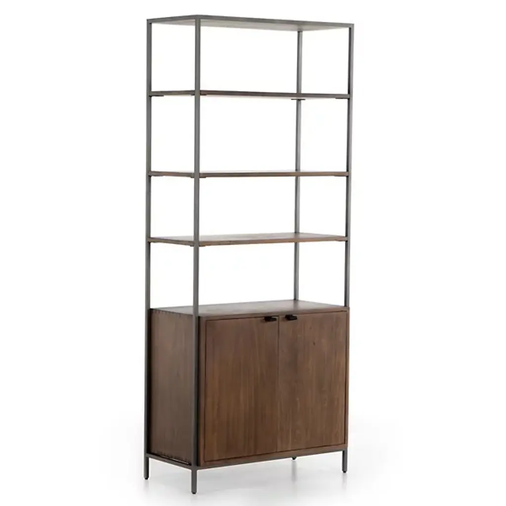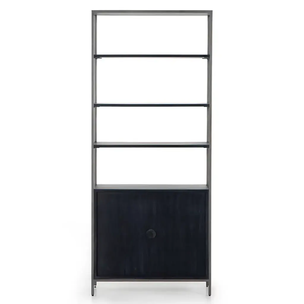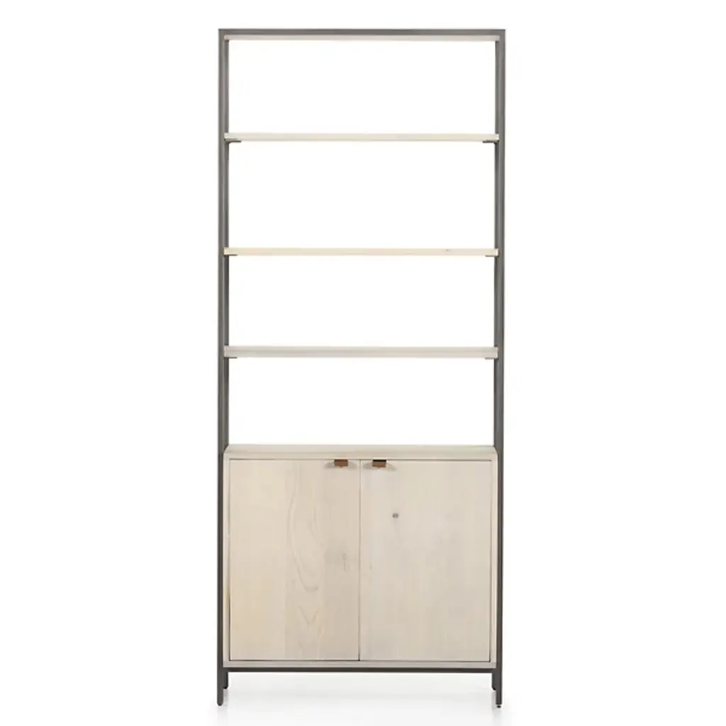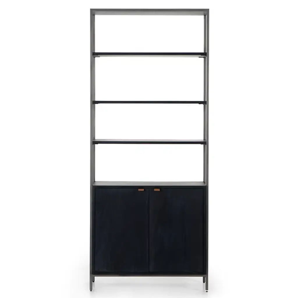 Inspired by sleek midcentury design, the Trey Modular Wide Bookcase from Four Hands combines solid auburn poplar with raw iron to create a stylish and functional piece. The open shelving offers ample space for displaying your favorite books and cherished treasures, while metal-secured leather pulls add a subtle yet textural element of surprise. Whether standing alone or paired with a matching media console, this bookshelf enhances any space with its blend of warm wood tones and industrial touches, offering both elegance and practicality.