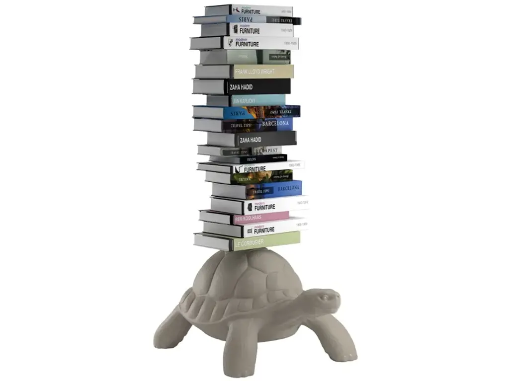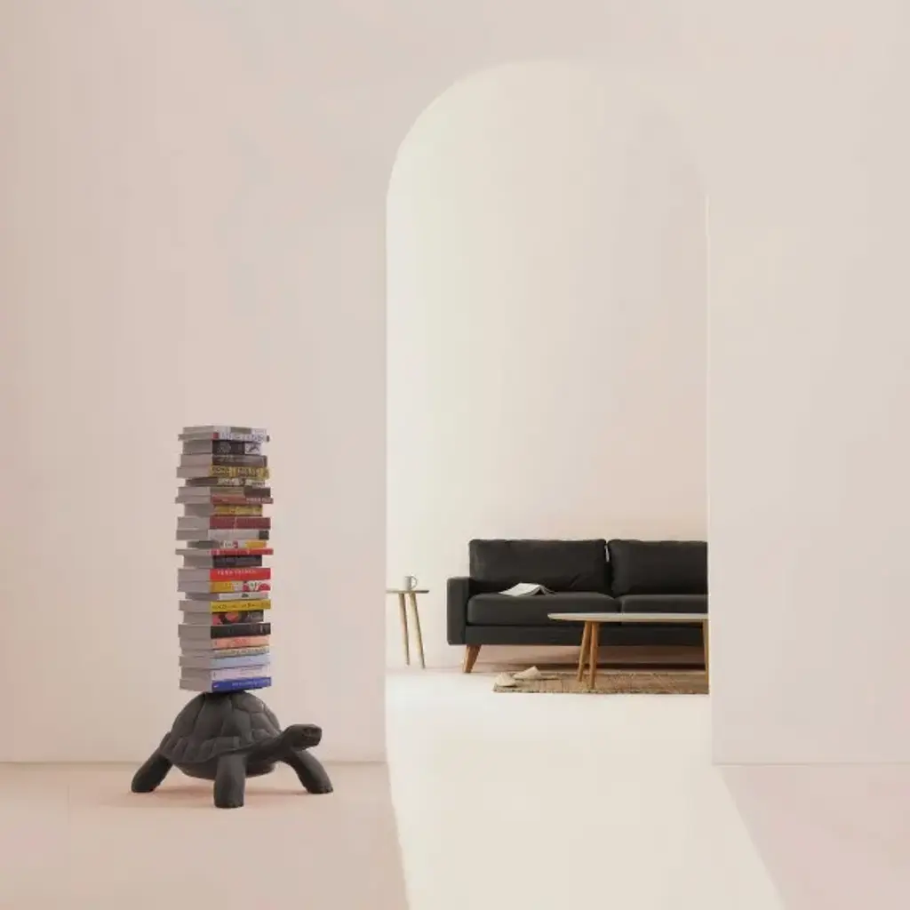 TURTLE CARRY BOOKCASE - This turtle carries on its carapace a metal bookcase composed of three shelves to hold your favorite books.Available in 3 colors: White, Dove Grey, BlackMaterial: turtle in polyethylene, bookcase in metal