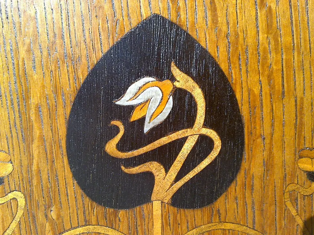 Two Arts & Crafts Oak Bookcases With Stylized Pewter, Ebonized & Sycamore Inlays