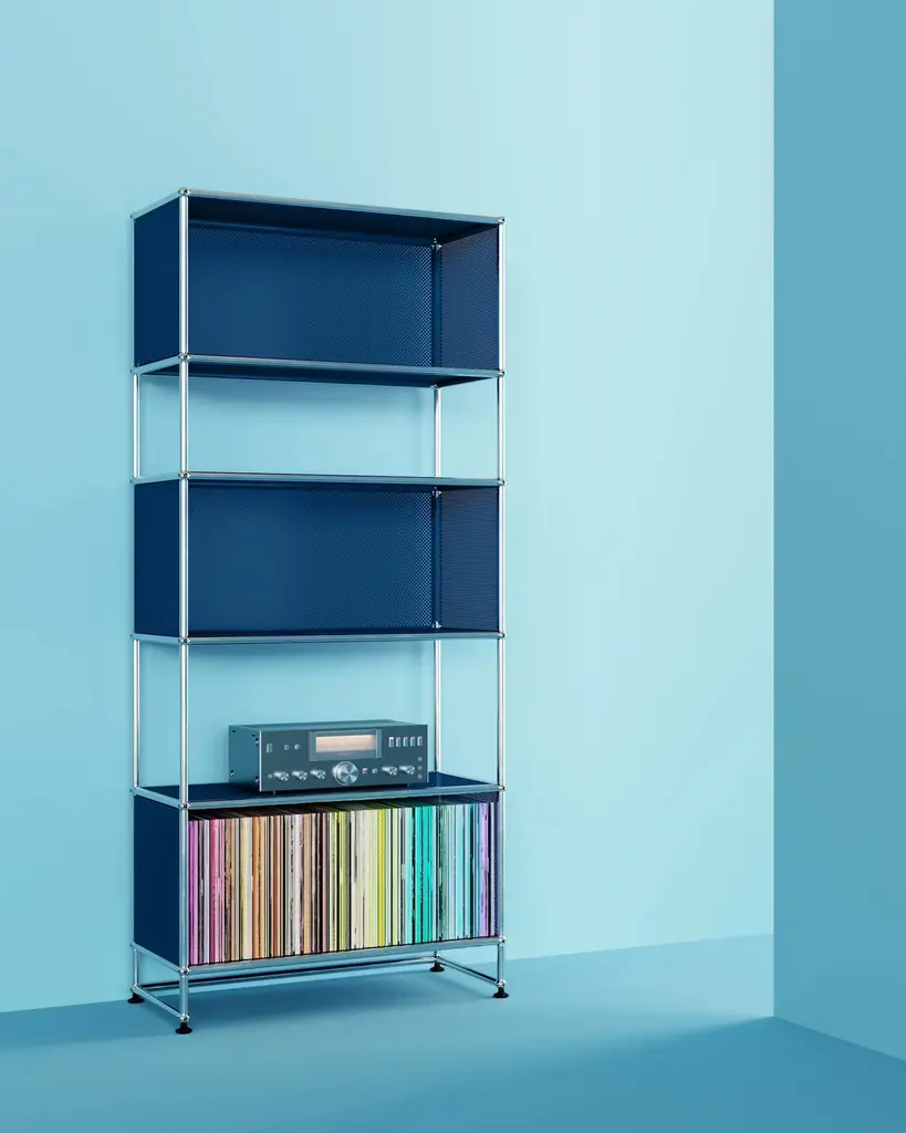 Precision-crafted and luxurious, the modular USM Haller Collection (1961) includes this hardworking bookcase. Constructed of steel and built to last for generations, pieces bought 50 years ago can be paired with those purchased today, and you can continue to add others as needs change. Made in Switzerland.