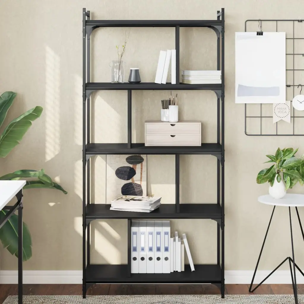 This tall bookcase blends function and style perfectly, adding an industrial vibe to your living room or office. Standing at 62.2 in, it's made from sturdy engineered wood, giving it a rugged yet classy look that fits a range of decor while providing loads of space to show off your favorite books, decorative items, or collections. Ample Storage: The bookcase features five spacious tiers designed to organize books, collectibles, or family photos while adding a touch of modern elegance to your space. Each shelf can hold a variety of weights, giving you flexibility to decorate and store effectively.Adjustable Feet: Built with adjustable feet, this product ensures stability on uneven floors. This feature enhances usability, especially in homes where floor surfaces may vary, allowing you to maintain a level display no matter where it is placed.Industrial Style: Its industrial-inspired design has a sleek matte black finish that fits right into contemporary and minimalist decors. This robust look is a nod to urban living, giving you a statement piece that really stands out.Easy Assembly: Simple assembly instructions let you set up your bookcase quickly, no hassle. It only needs basic tools and a helping hand, making the whole process straightforward.Durable Materials: Made from engineered wood with a matte finish, this bookcase not only looks great but is also moisture-resistant, ensuring that it lasts and keeps looking good for ages.
