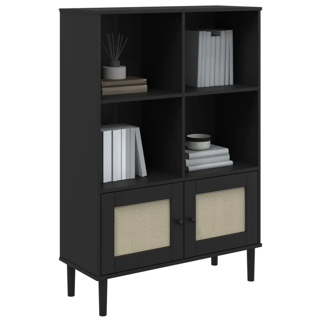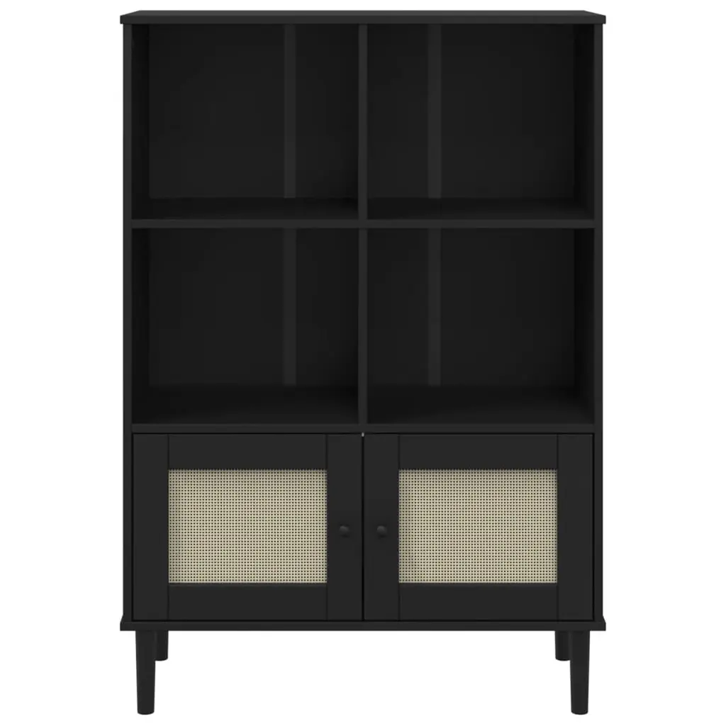 This Rattan Look Bookcase is a great addition to any space, meant to enhance your living room, study, or office decor. With a stunning black finish and a basketweave design, it serves as both a practical storage solution and a standout feature, radiating style and sophistication for everyone. Ample Storage: With four spacious compartments, this bookcase offers loads of room for displaying books, decorative items, and your personal treasures. Its smart design makes organization easy, allowing you to store items of all sizes without losing any style. Adjustable Shelves: The adjustable shelves let you set the height of each shelf, easily fitting tall books and small decor items. This gives you the flexibility to keep up with different needs. Elegant Design: The mid-century vibe mixed with boho elements makes this bookcase not just practical but also a stunning addition to your home’s look. The deep black color gives it a classy touch, while the rattan look adds warmth and charm. Durable Material: Made from solid pine wood and protected with a UV varnished finish, this bookcase is strong and can handle wear and tear. The mix of wood and synthetic rattan makes it perfect for indoor use, keeping its charm over time. Recommended Uses: Perfect for living rooms and studies, designed to showcase decorative items and improve reading spots. Whether you’re an avid reader or need smart storage, this piece covers all bases effortlessly.