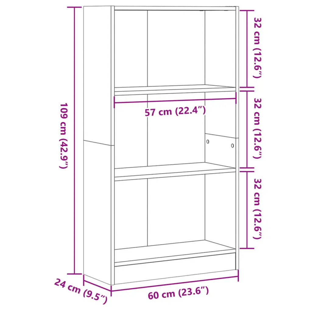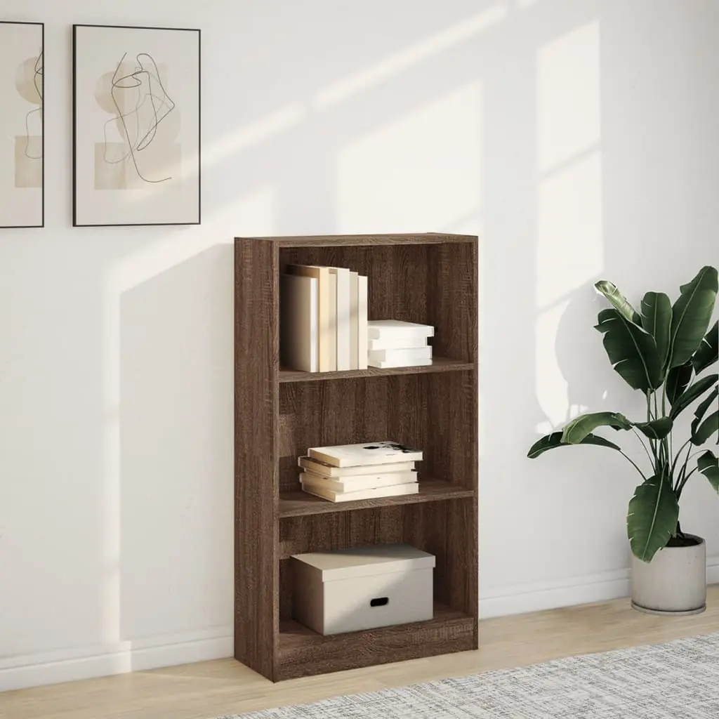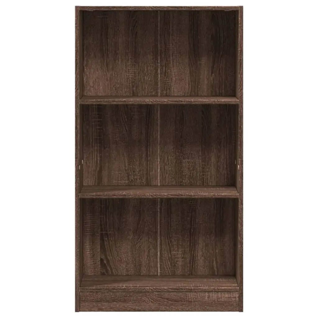 This modern bookcase is stylish and practical, making it a standout feature in your living room, bedroom, office, or hallway. With its lovely brown oak finish and clean lines, it blends well with various styles while providing handy storage for books and decorative items. Generous Shelf Space: With three sturdy shelves, this bookcase is perfect for keeping books tidy and showcasing your décor. Each shelf is made to hold a decent load, so your items stay put and secure.Sleek Aesthetic: The modern design features a matte finish that adds a splash of elegance to any room. Its simple lines and smooth finish blend right into different home styles, giving it a fresh vibe.Versatile Use: Made for indoor use, this bookcase fits into various spots, from a cozy living room to a stylish bedroom or practical office. It can be both a smart storage solution and a decorative display unit.Space-Saving Design: Fixed to the wall with included hardware, this bookcase maximizes your floor space and keeps everything looking neat. The wall-mounted feature adds security, especially if you have little ones or pets around.Quality Craftsmanship: Made from moisture-resistant engineered wood, this bookcase is tough enough for daily life. It’s built to last, providing you with reliable storage for years to come.