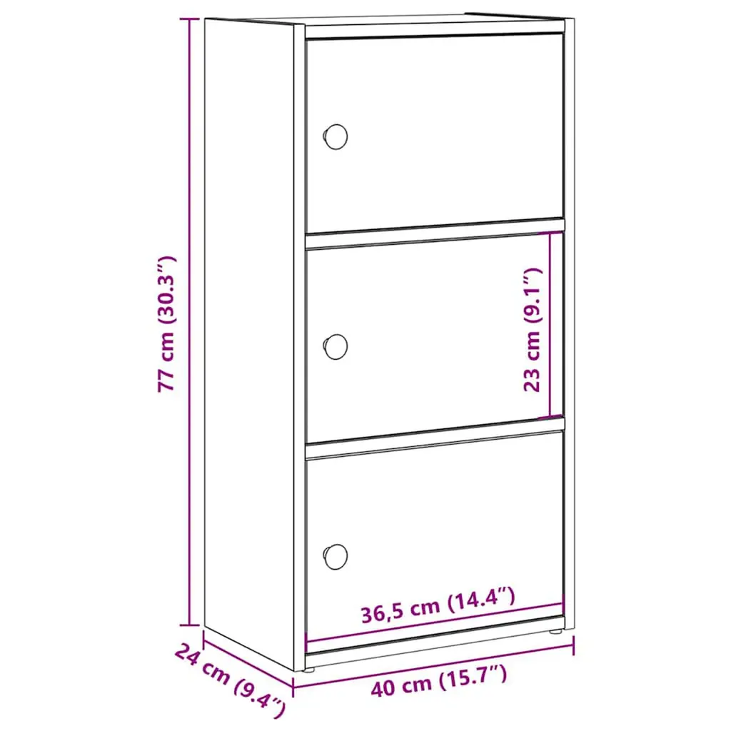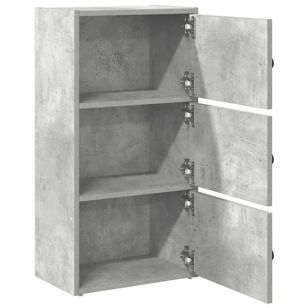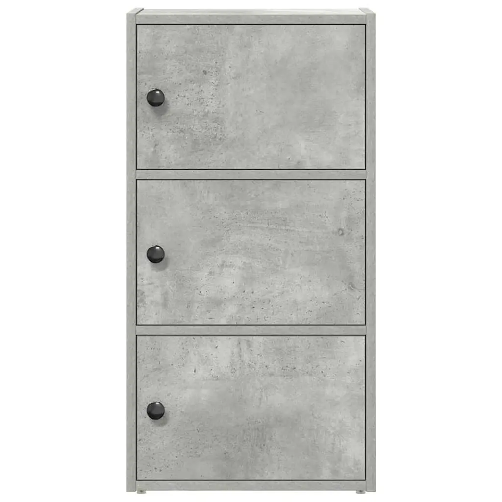 This compact modern bookcase is perfect for keeping your book collection sorted while adding a trendy touch to your room. The concrete grey finish gives it a contemporary look, making it a great fit for living rooms, offices, or studies, helping you create a comfy reading nook. Ample Storage: This bookcase has three big shelves, ideal for keeping books, magazines, or decorative items. Perfect for tidying up your reading materials or showcasing your favorite bits.Flexible Door Installation: With a hinge door setup, you can choose whether to keep your things hidden or on display. This adaptability helps to personalize the bookcase according to your taste.Durable Construction: Made from engineered wood, this bookcase is built to last. The smooth feel and matte finish not only make it look good but also ensure it can handle everyday use.Compact Design: At 15.7 in long and 9.4 in wide, this bookcase works wonders in smaller spaces without losing out on storage. It fits neatly in corners or against walls, making it ideal for apartments, dorms, or anywhere space is tight.Easy Maintenance: Just a quick wipe with a damp cloth is all it takes to keep this bookcase looking spick and span. Avoid harsh chemicals to keep it in top shape.
